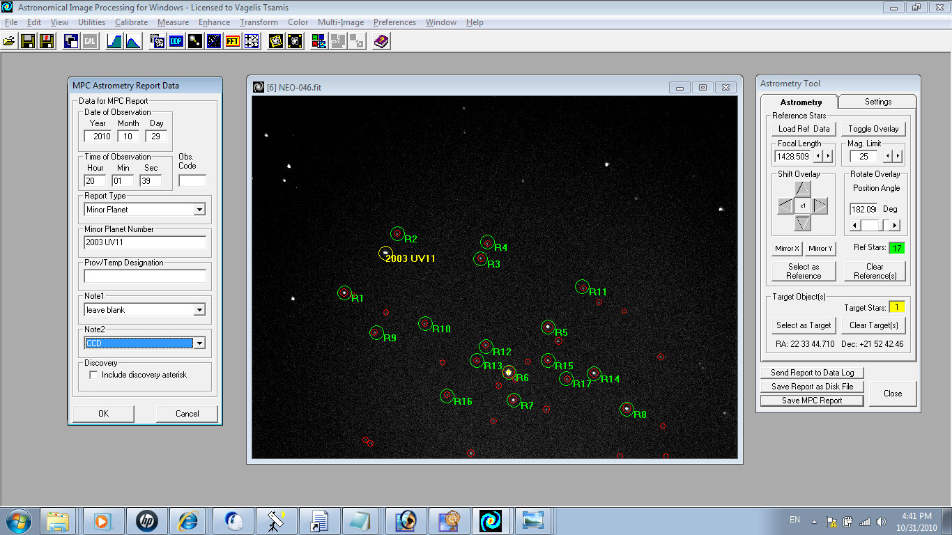 2003 Uv11 Astrometry - Aip4win