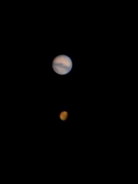 Η απόσταση Γης Αρη είναι στις 220605 1 AU και η Φ.Δ. 8", στις 291005 0,46 AU και 20" αντίστοιχα. Οι φωτογραφίες έχουν ληφθεί με τα ίδια όργανα και μεγέθυνση γιά να συγκριθεί το μέγεθος. Meade LX200 Barlow X2 LPI.