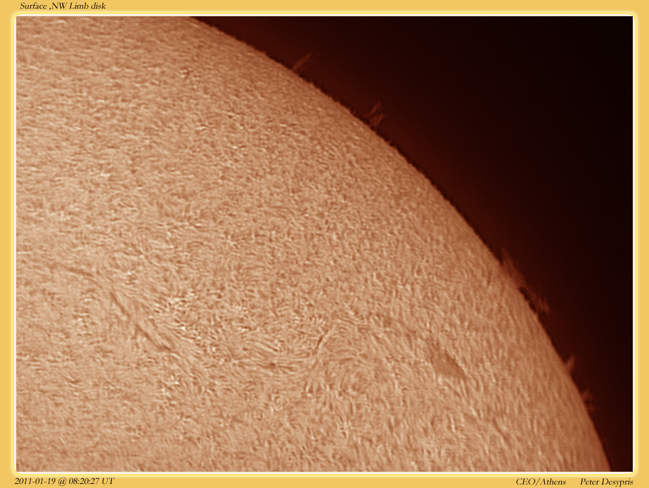 Άλλη μια εικόνα από την επιφάνεια του Άστρου μας, σε ενιαία επεξεργασία δίσκου & άκρων.Απέφυγα τον έντονο χρωματισμό του δίσκου για χάρη των άκρων, που δίνουν μια άλλη αίσθηση στην εικόνα...