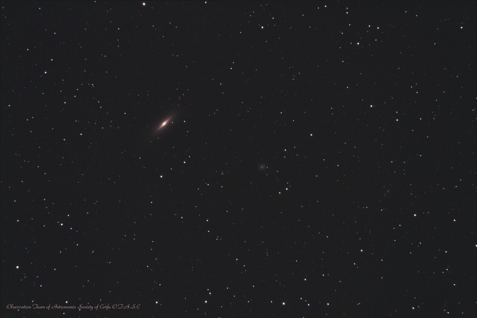Ο Γαλαξίας στα Αριστερά της φωτογραφίας είναι NGC2424, ένας γαλαξίας παρόμοιος του Cigar & του Sombrero Galaxy.