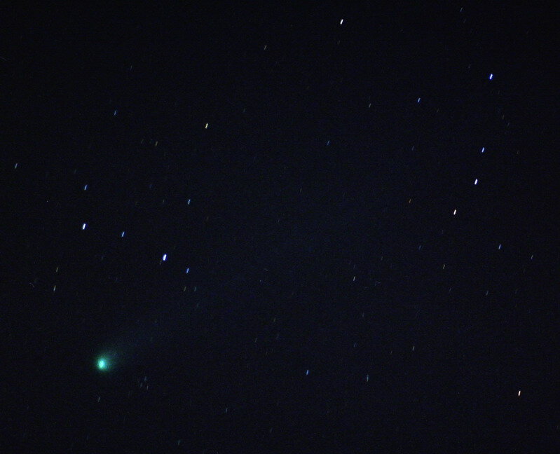μέχρι εκδηλώσεις μεγάλης έκπληξης και θαυμασμού. Τα Vixen 7X50 αναντικατάστατα για τη μακριά και αχνή ουρά του. Στις φωτογραφίες, την ώρα περίπου που περνά από τον αστερισμό της Καμηλοπάρδαλης στον αστερισμό της Κασσιόπειας. Το μικρό ανοιχτό σμήνος δεξιά και λίγο χαμηλότερα από την κώμη είναι του Pazmino (St 23).