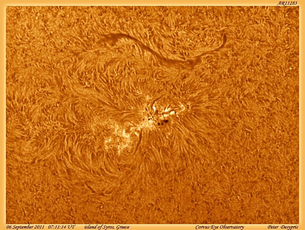 Η ενεργή περιοχή 11283, η οποία συνεχίζει να βομδαρδίζει μέχρι και σήμερα τη Γη, με διαφόρων κατηγοριών, εκλάμψεις.