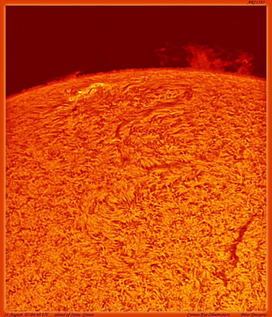 Δύο ηλιακά σκηνικά από τη χρωμόσφαιρα, της αυτής περιοχής, με τα σχετικά φαινόμενα εν δράσει ενεργή περιοχή -κηλίδα -νήμα-προεξοχές, με διαφορά 3ων ημερών.