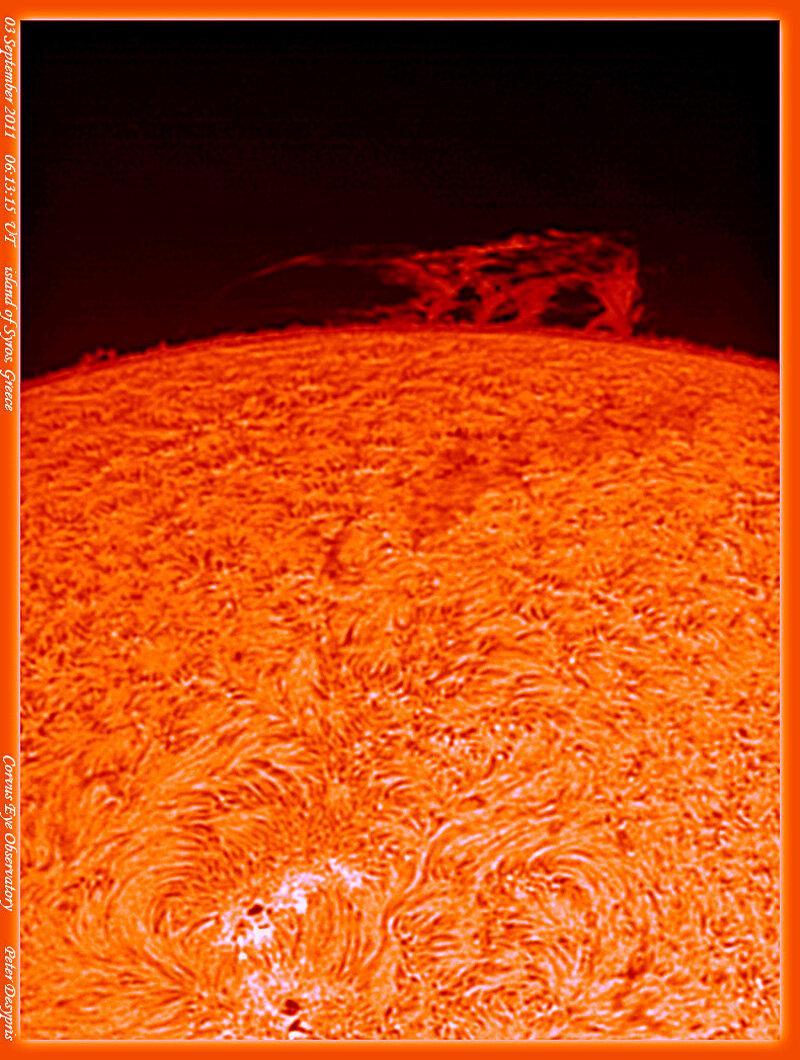 Δύο ηλιακά σκηνικά από τη χρωμόσφαιρα, της αυτής περιοχής, με τα σχετικά φαινόμενα εν δράσει ενεργή περιοχή -κηλίδα -νήμα-προεξοχές, με διαφορά 3ων ημερών.