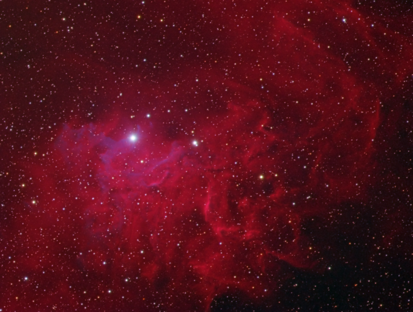 1500 ετη φωτος μακρια, καλυπτοντας εκταση 5 ετων φωτος απο ακρη σε ακρη, ενα μιγμα απο νεφελωματα εκπομπης και ανακλασης, φωτιζομενα απο το "φλεγωμενο αστρο", το μεταβλητό ΑΕ του Ηνίοχου, ενα αστρο "φυγας" που εχει τις ριζες του καπου στον Ωρίωνα.