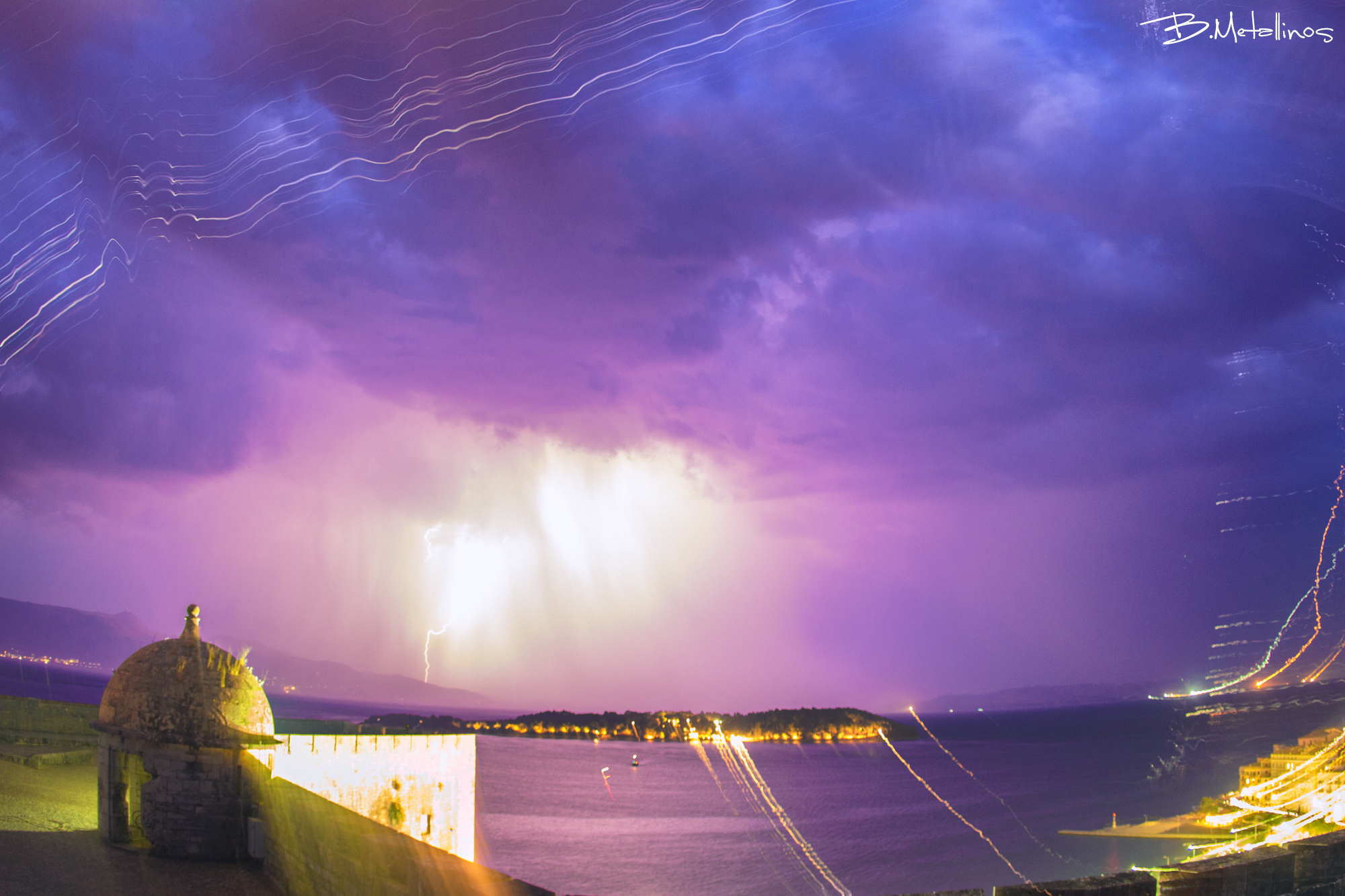 Αν αναρωτιέστε τι βλέπουμε σίγουρα δεν είναι η Αυγουστιάτικη Πανσέληνος, αλλά οι Κεραυνοί που έπεφταν ολόγυρα απο την πόλη της Κέρκυρας! Σαν φωτογραφία είναι όμορφη αλλά η ιστορία της είναι μεγάλη, ελπίζω να έχετε λίγο χρόνο για την ιστορία ένος ματωμένου αστροφωτογράφου...