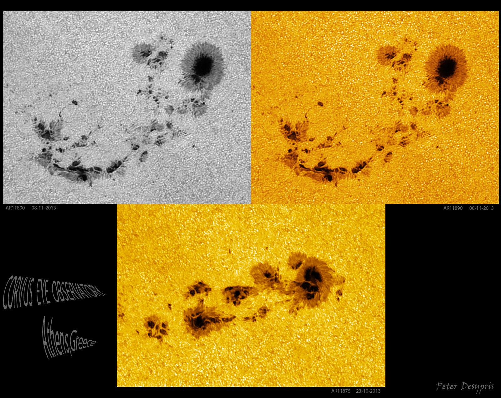 Οι δύο μεγαλύτερες κηλίδες που εμφανίσθηκαν από 23-10-2013 έως 08-11-2013.