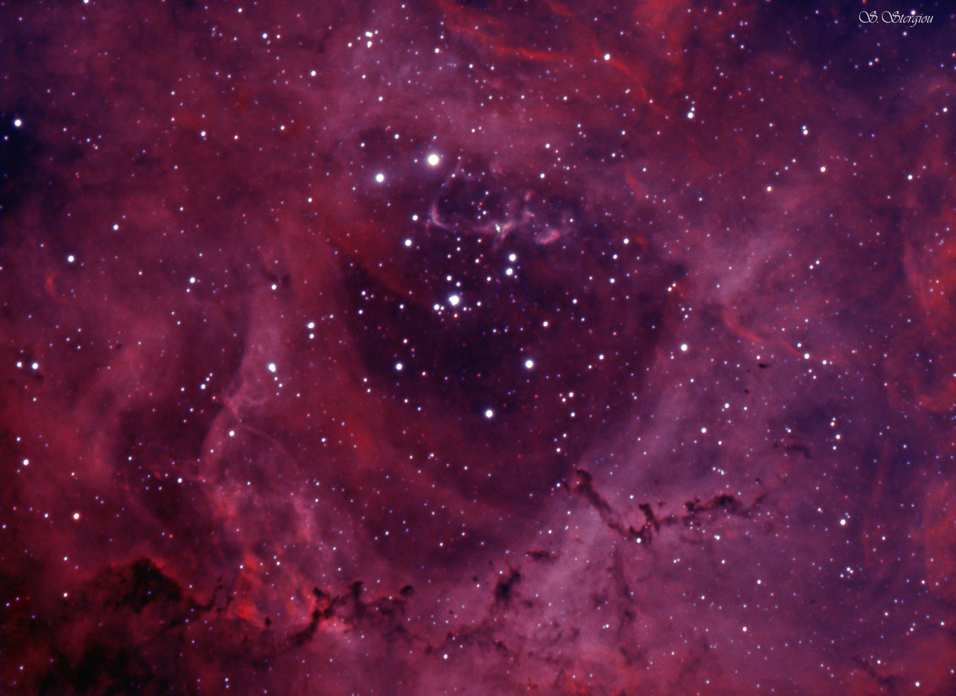 Η "ροζετα" οπως το ονομαζουμε ειναι ενα απο τα πιο κοντινα σε εμας νεφελωματα και βρισκεται σε αποσταση 4900-5200 ετη φωτη μακρια μας και εχει διαμετρο 130 ετη φωτος. Το νεφελωμα αυτο εχει χαρατηριστικο ενα ανοιχτο σμηνος το NGC2244 στο κεντρο του. Η ακτινοβολία από τα νεαρά αστέρια διεγείρουν τα άτομα του νεφελώματος, προκαλώντας τους να εκπέμψουν ακτινοβολία που παράγουν τα ιδια, με αποτελεσμα το νεφέλωμα εκπομπής που βλέπουμε. Η μάζα του νεφελώματος εκτιμάται ότι είναι περίπου 10.000 ηλιακές μάζες. (πηγη: wikipedia)