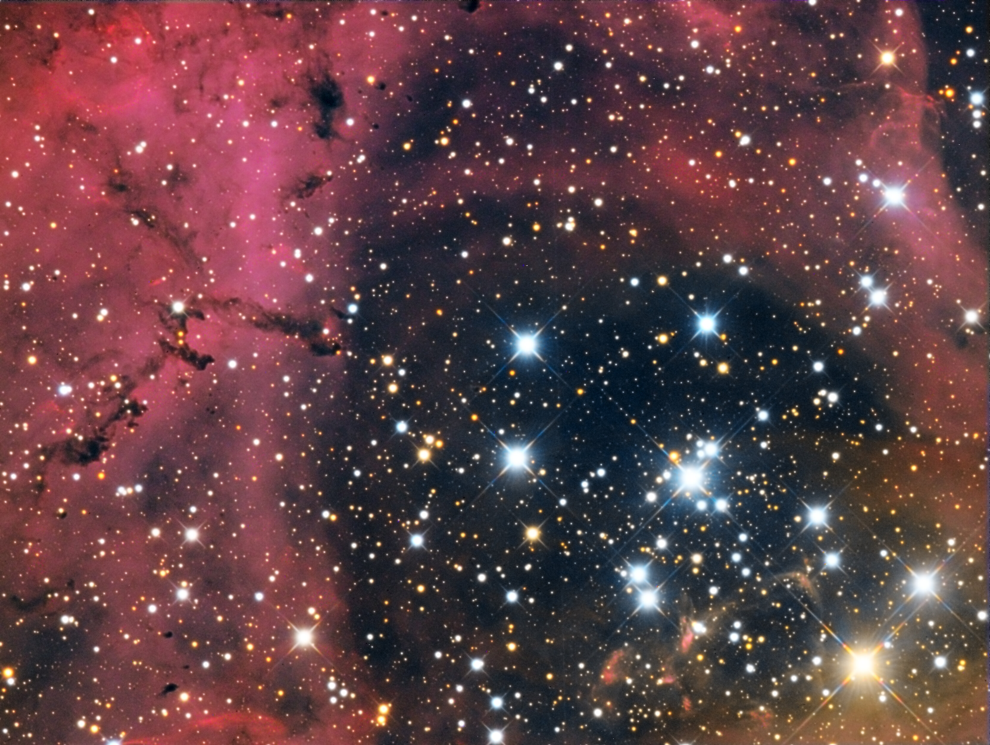 Η καρδία του νεφελώματος της Ροσέτας στον αστερισμό του Μονόκερου. Το ανοιχτό σμήνος είναι τό NGC 2244.
