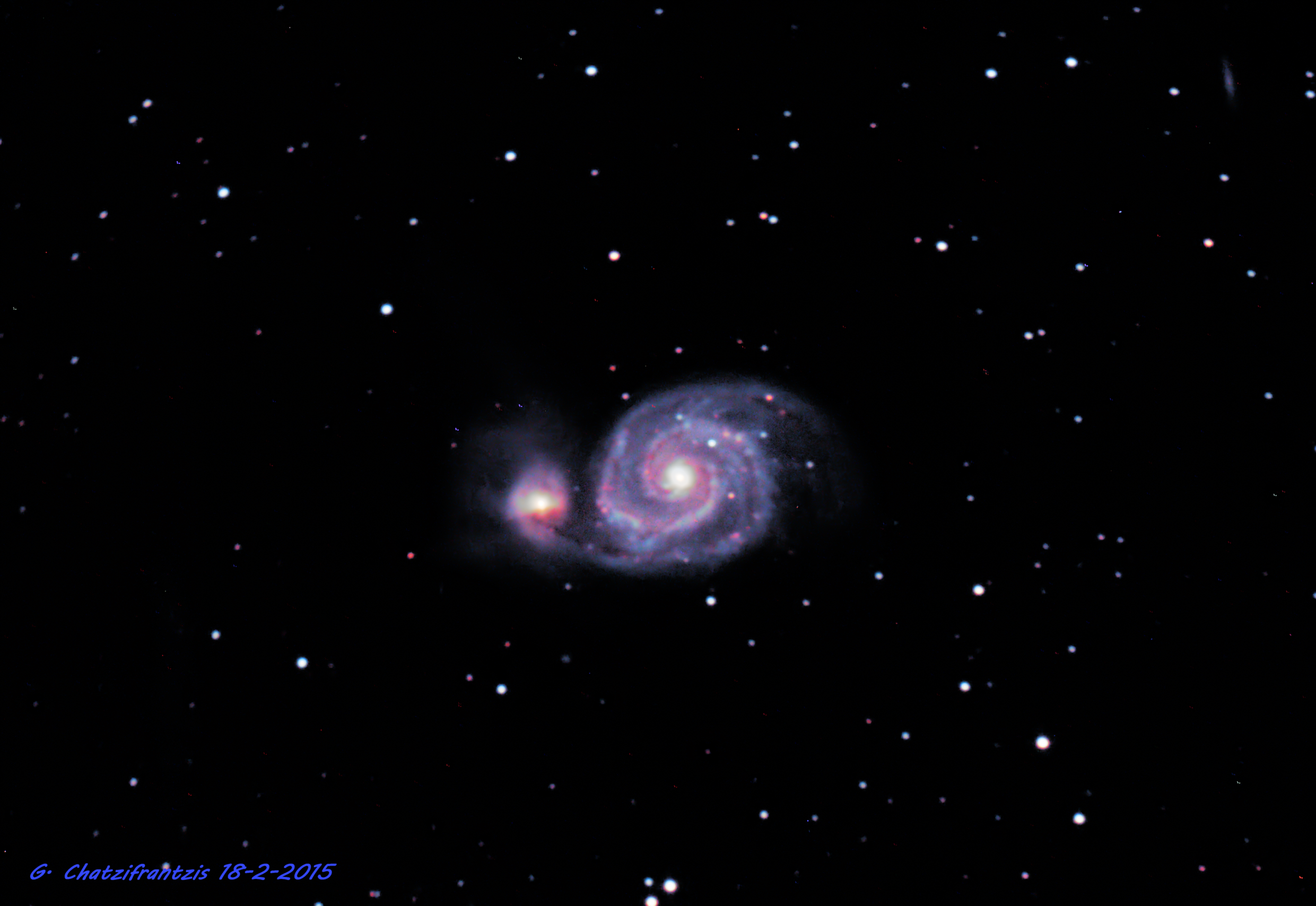 Πρωτη προσπαθεια για το πρωτο γαλαξια που βγαζω.Για λογους ανωτερας βιας η ληψη ειναι μονο τρια καρε και 14 λεπτα συνολο.Τραβηγμενη απο τη νεα γωνια χαλκιδικης με τη θερμοκρασια να ειναι σταθερα στους 0 βαθμους!