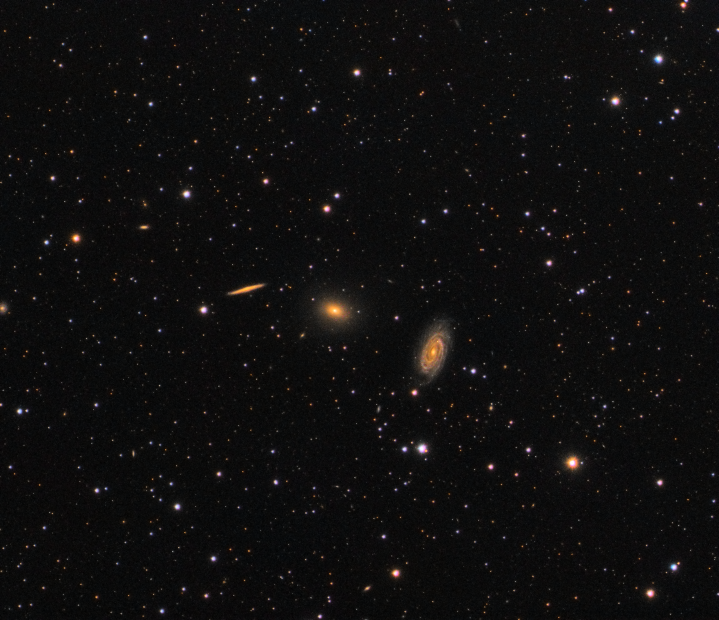 Τρεις ομορφοι γαλαξιες στην περιοχη του Δρακου, απο αριστερα προς δεξια, NGC 5981 , NGC 5982 και ο καταπληκτικος face-on spiral ρ.