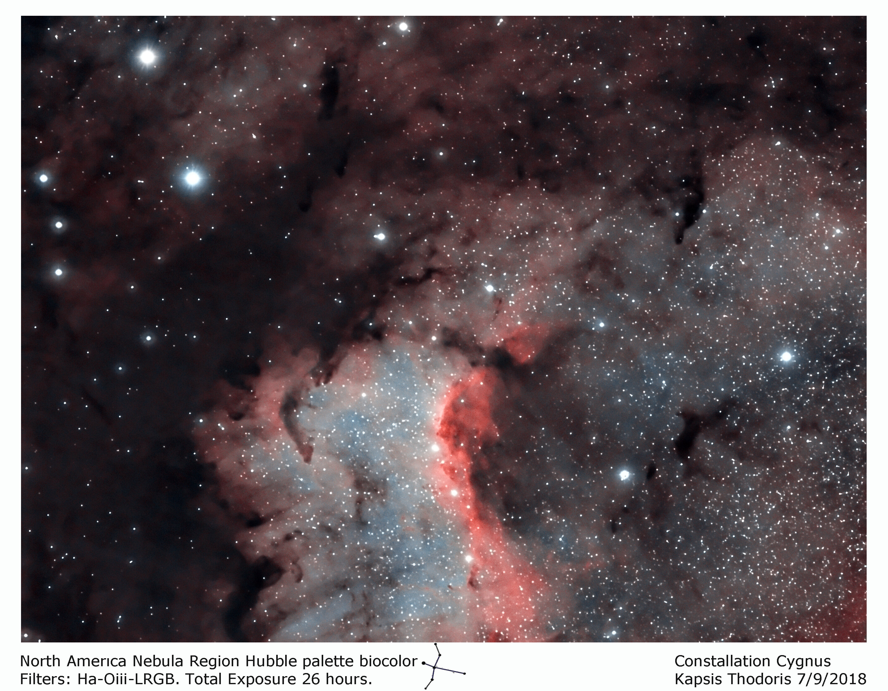 Μια προσπάθεια απόδοσης του νεφελώματος σε Hubble Palette Biocolor.