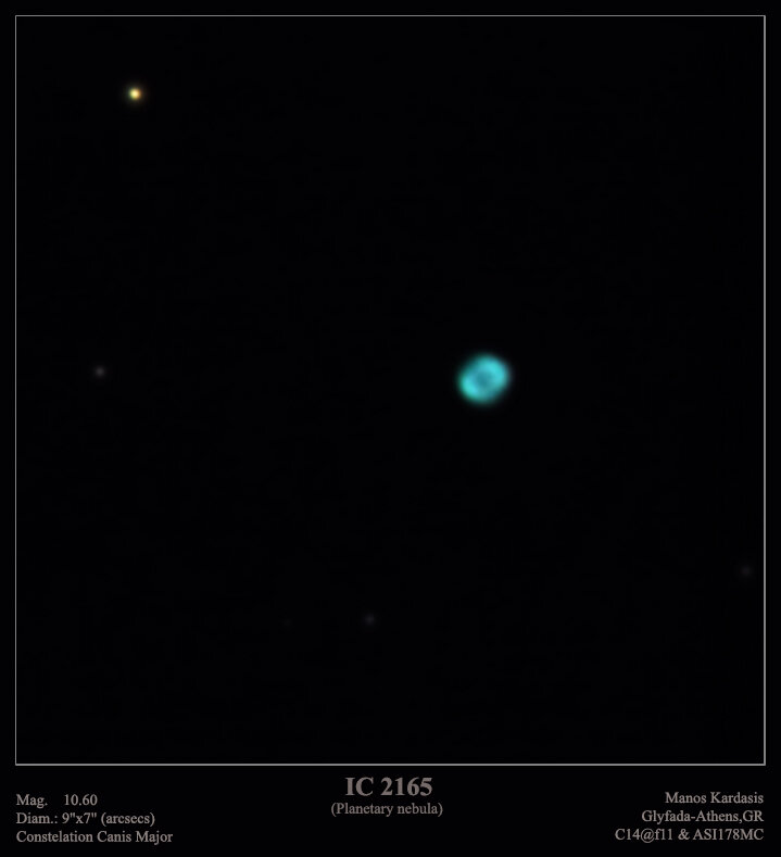 ''Αλλο ένα χειμερινό μικροσκοπικό πλανητικό νεφέλωμα (~8 arcsecs) που δεν βρήκα σχεδόν πουθενά φωτογράφηση του από ερασιτέχνες. Κρίμα γιατί είναι ένα μικρό διαμάντι!