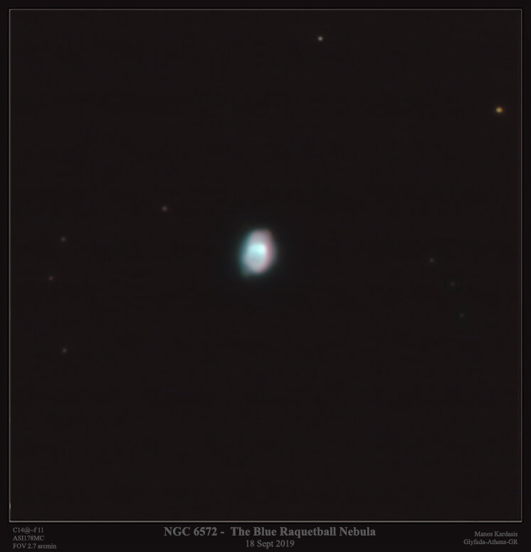 Ενα πλανητικό νεφέλωμα διαστάσεων μολις 15X17 arcsec. 2η προσπάθεια με καλό seeing οπότε και σημαντικά καλύτερο αποτέλεσμα.Το προηγούμενο εδώ: