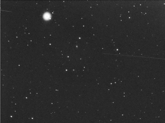 Το φωτεινό άστρο επάνω είναι το θήτα της Παρθένου. Το ngc4990 είναι ο γαλαξίας που φαίνεται λίγο πιο κάτω και δεξιά σαν άστρο αλλά έχει μια μικρή επιμήκυνση από επάνω δεξιά προς κάτω αριστερά. Οι γραμμές που διασχίζουν την εικόνα είναι τεχνητοί δορυφόροι.