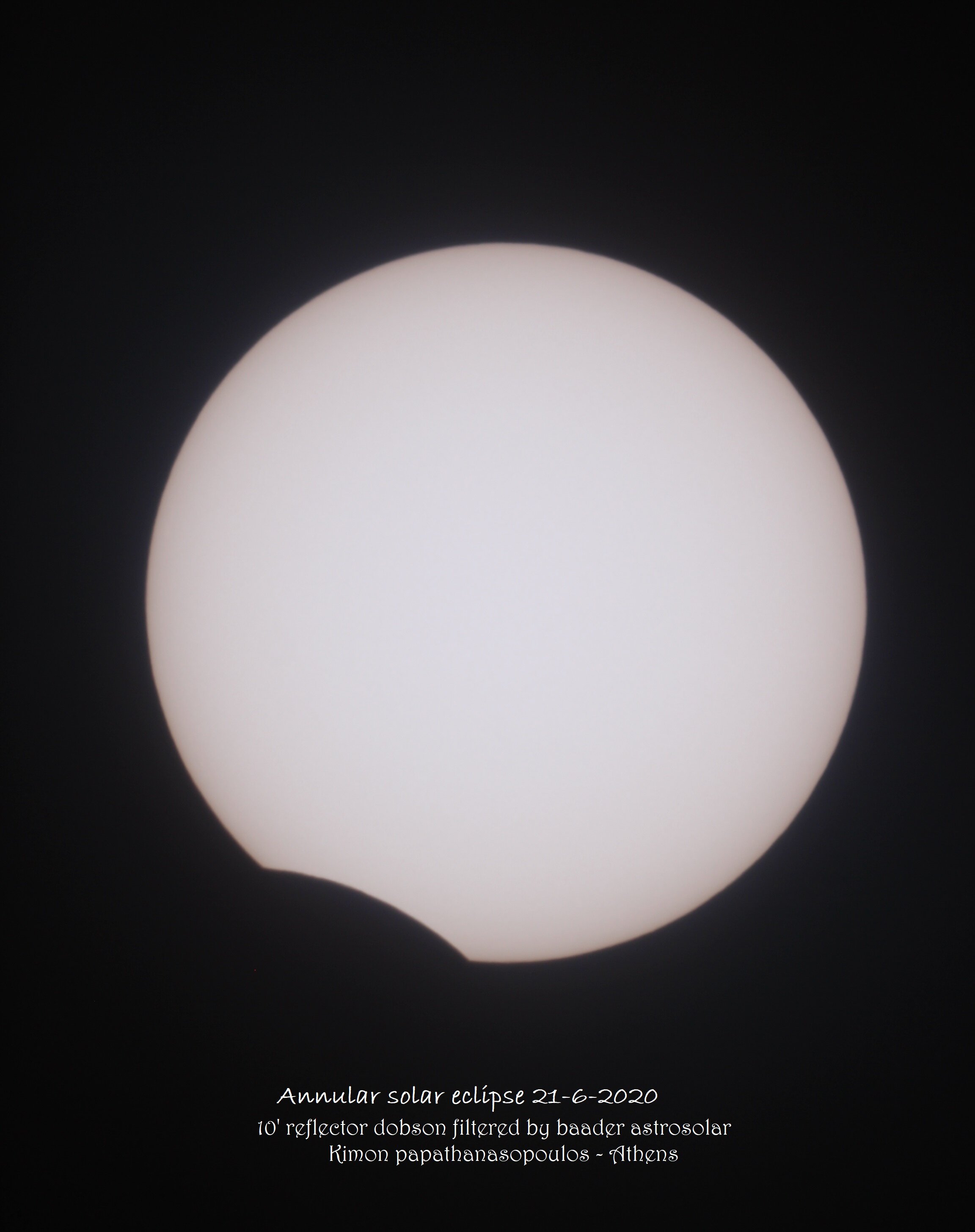 !0'''' Dob reflector filtered by baader astrosolar. Captured 08:35 21-6-2020 from Athens