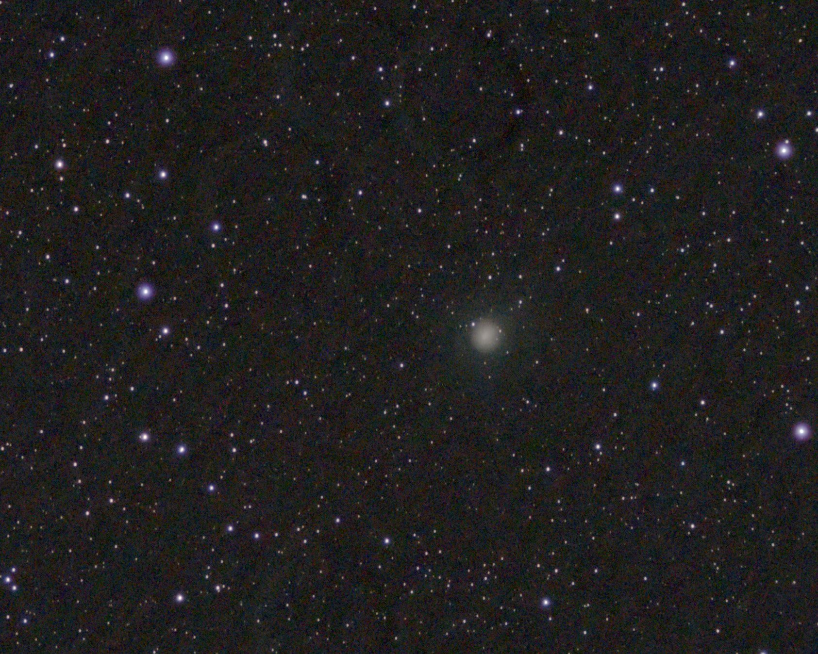 Ο κομήτης Πονς-Μπρουκς στις 20 Νοεμβρίου 2023, μετά από μια ακόμη έκρηξη. Διακρίνεται η λευκή κόμη σκόνης και η αχνή πράσινη κόμη αερίων. Μέσα στη λευκή κόμη διακρίνεται μία σκοτεινή γραμμή, αλλά όχι τα χαρακτηριστικά κέρατα.