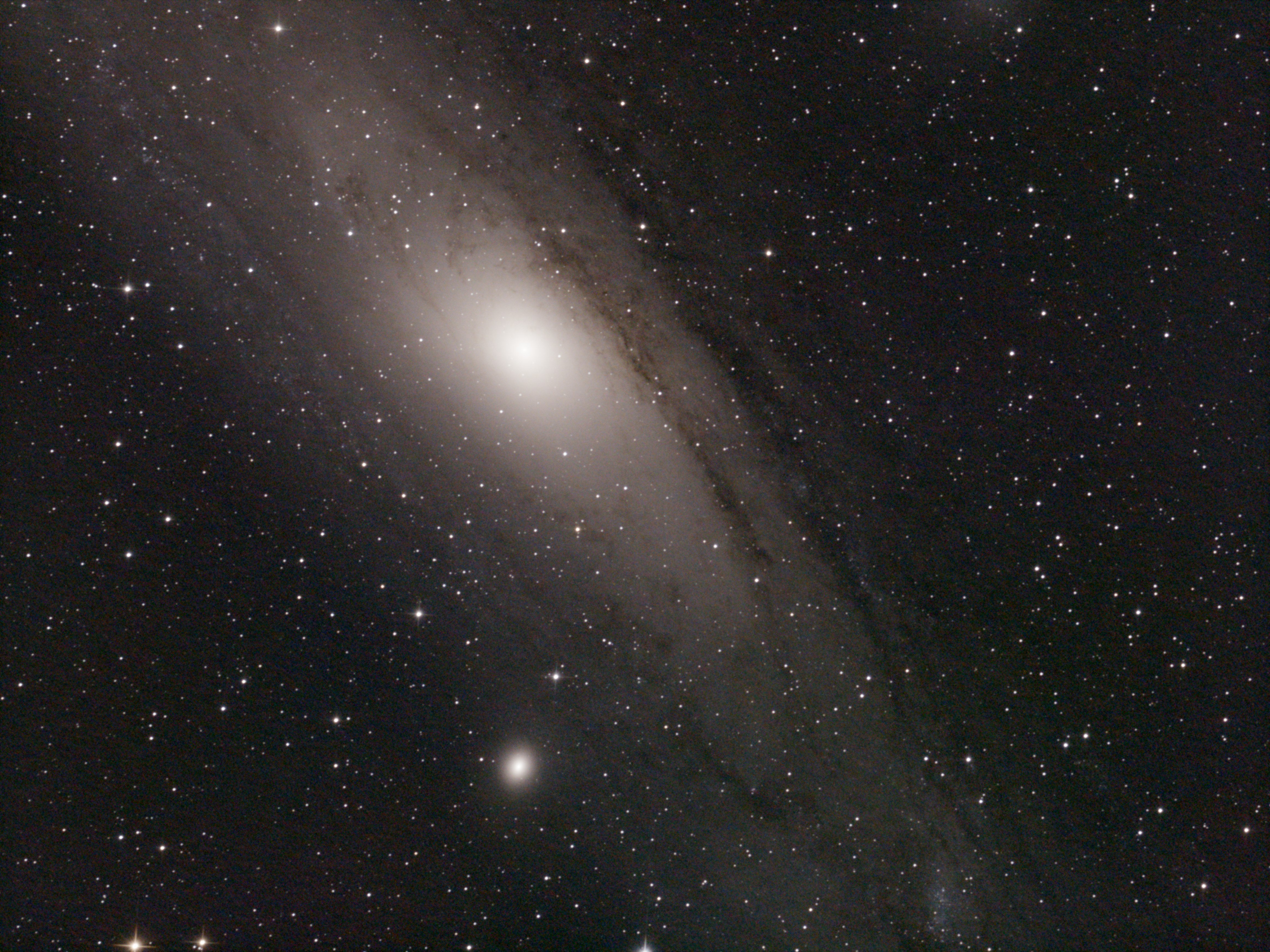 Ο πρώτος γαλαξίας της Ανδρομέδας αυτή τη σεζόν, με το 8-ιντσο νευτώνειο. Διακρίνεται ο πυρήνας του γαλαξία μαζί με τον μικρό ελλειπτικό δορυφόρο του, Μ32. Φαίνεται επίσης το αστρικό νέφος NGC 206 στο κάτω τμήμα της εικόνας.