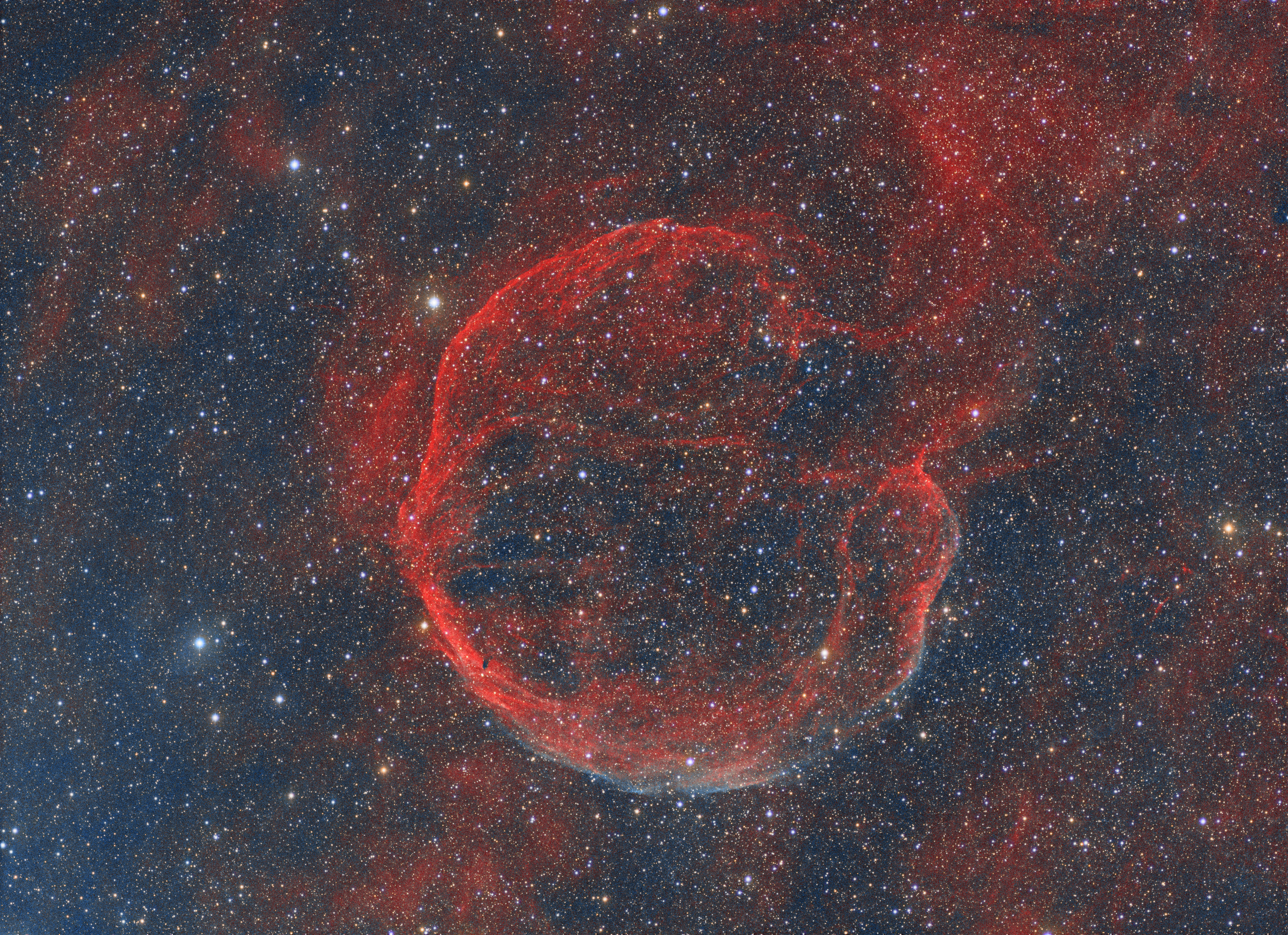 Ενα πολυ αμυδρο απομειναρι απο supernova στην Κασσιοπια 9800 LY μακρια μας, με διαμετρο 100LY (!) και 10000 χρονια παλιο, ενα απο τα μεγαλυτερα αντικειμενα στον ουρανο.