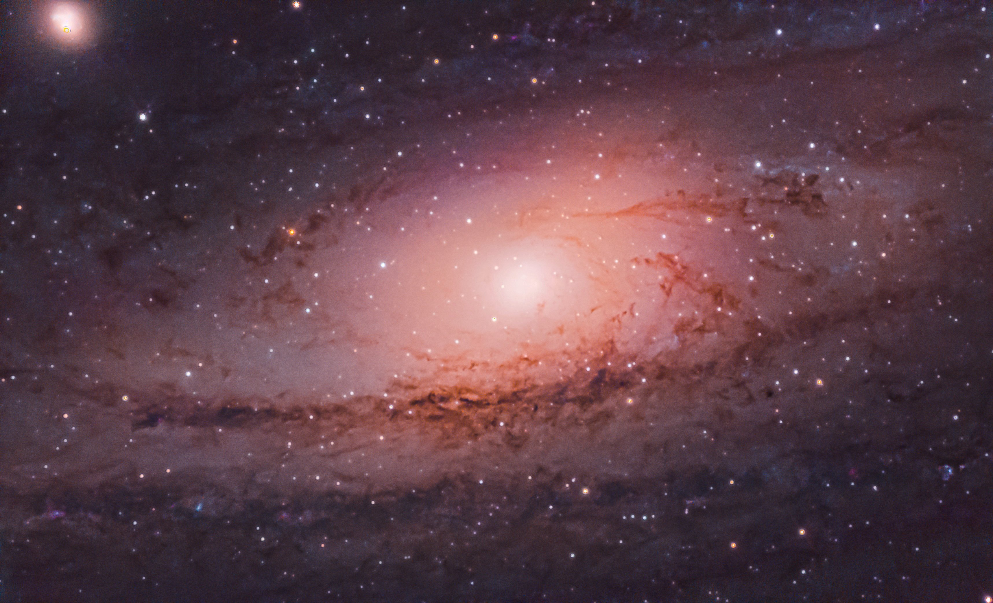 Εντάξει, πραγματικά πιστεύω ότι αυτό το project είναι πολύ περίεργο και θα το εξηγήσω πολύ σύντομα. Ξεκίνησα λοιπόν με κύριο στόχο να φωτογραφίσω το αριστερό μέρος του M31, αλλά αποφάσισα να το κάνω πιο εύκολο για μένα και να τραβήξω φωτογραφίες στον πυρήνα, οπότε ναι, αυτό έκανα. Συνέλεξα επίσης 2 νύχτες με δεδομένα Ha, αλλά δεν τα κατάφερα στην επεξεργασία, οπότε ναι, χαίρομαι που έμαθα κάποια νέα πράγματα κατά τη διάρκεια του project, όπως ότι είναι πολύ σημαντικό να αποκτήσω έναν αυτόματο εστιαστή πολύ σύντομα 🔜, οπότε ναι, ελπίζω να σου άρεσε αυτή η εικόνα και μέχρι την επόμενη κυκλοφορία...