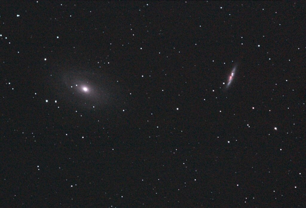 Το γνωστό ζεύγος γαλαξιών Μ81-Μ82. Χρησιμοποιήθηκε φίλτρο broadband Orion Skyglow 2", Canon 300d, Skywatcher 80ED χειροκίνητη οδήγηση του C11 με φωτεινό σταυρόνημα. Συνολικά 2 εκθέσεις: