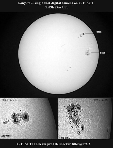Συνθήκες: ισχυρός άνεμος, πολύ κακό seeing, χωρίς adaptor σύνδεσης με τη μηχανή βιαστικά στο χέρι λίγο πρίν συννεφιάσει οριστικά. Βοήθησαν πολύ η υψηλή ταχύτητα και ένα μαύρο πανάκι γύρω από τη μηχανή και τον προσοφθάλμιο για το έντονο πλευρικό φώς