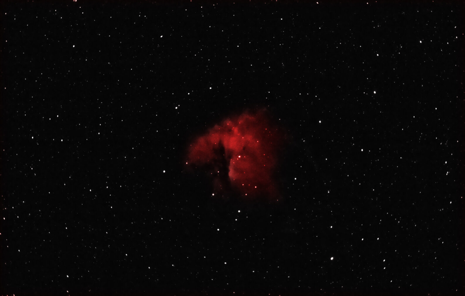 Σίγουρα ήθελα πολύ περισσότερο χρόνο + RGB frames, αχνές περιοχές του νεφελώματος δεν έχουν καταγραφεί. Επεχείρησα ένα μικρό ψευδοχρωματισμό, εξού και το κόκκινο νεφέλωμα αλλά τα λευκά άστρα..