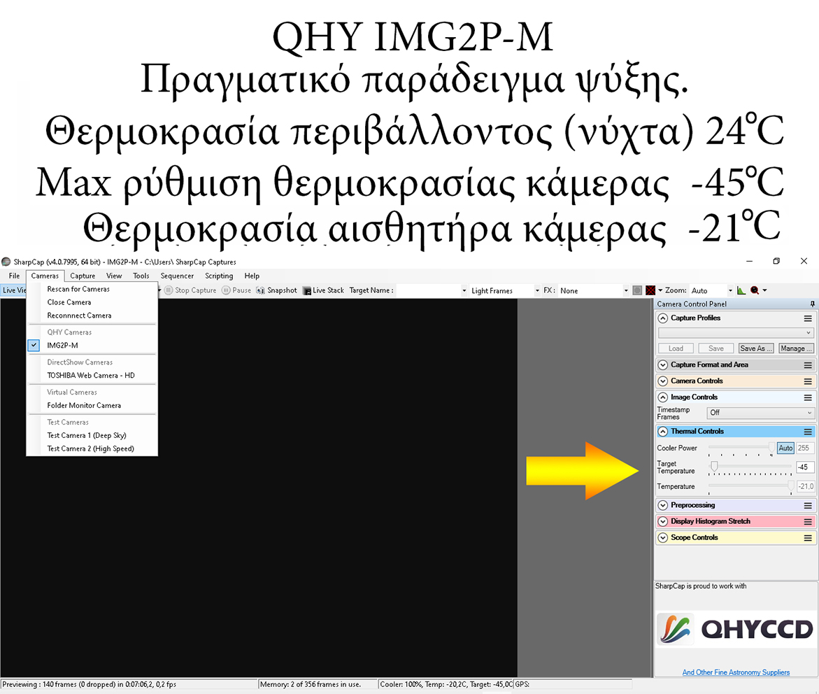 Πωλείται μονόχρωμη ccd camera QHY IMG2PΜ σε τέλεια κατάσταση. ΠΡΙΝ ΟΠΟΙΑΔΗΠΟΤΕ ΣΥΝΑΛΛΑΓΗ ΘΑ ΓΙΝΕΙ ΤΗΛΕ-ΣΥΝΕΔΡΙΑ ΓΙΑ ΕΠΙΔΕΙΞΗ ΤΗΣ ΛΕΙΤΟΥΡΓΙΚΟΤΗΤΑΣ ΤΗΣ ΚΑΜΕΡΑΣ. Χρησιμοποιεί τον υψηλής ευαισθησίας αισθητήρα της SONY ICX285AL 1,4Mp 2/3inch με microlenses που είναι ιδιαίτερα δημοφιλής στην αστροφωτογραφία λόγω των πολύ καθαρών απεικονίσεων σε μακροχρόνιες εκθέσεις βαθέως ουρανού. Το σύστημα ψύξης -Thermoelectric cooler (TEC) είναι 2 επιπέδων με χαμηλή κατανάλωση ρεύματος και φτάνει μέχρι -45 βαθμούς κελσίου από την θερμοκρασία περιβάλλοντος. Κατά τις νύχτες με πολύ υψηλή υγρασία και πολύ υψηλή θερμοκρασία για να αποφευχθεί η εμφάνιση πάγου στον αισθητήρα, διαθέτει χειροκίνητο συλλέκτη υγρασίας του θαλάμου του αισθητήρα. Χρησιμοποιεί drivers ASCOM και δουλεύεται με όλα τα γνωστά προγράμματα αστροφωτογραφίας ενώ ο χρήστης μπορεί να κατεβάσει δωρεάν το SharpCap (συνεργάτες QHY) και να την χρησιμοποιήσει. Το πακέτο περιλαμβάνει: 1)CCD IMG2Pro Mono camera 2) DC201 3)Τροφοδοτικό σταθεροποιημένο 12V 5A 4)Καλώδια σύνδεσης κάμερας με DC201 και USB 2.0 5)Συλλέκτη αφύγρανσης με αντάπτορα προσαρμογής 6)Σκληρή βαλίτσα PELI 1200 με χαρακτηριστικά «Προστασίας κρούσης, Αδιάβροχη, Με βαλβίδα ανταλλαγής αέρα, Προστασία από την σκόνη» σε μαύρο χρώμα, Διαστάσεις: 279.00mm x 132.00mm x 256.00mm, Βάρος: 1.76kg ΤΙΜΗ:ΧΩΡΙΣ ΒΑΛΙΤΣΑ PELI ΚΑΙ ΤΡΟΦΟΔΟΤΙΚΟ: 690 ΤΙΜΗ:ΜΕ ΒΑΛΙΤΣΑ PELI ΚΑΙ ΤΡΟΦΟΔΟΤΙΚΟ : 730 Επικοινωνία: ΝΙΚΟΣ ΤΣΑΚΑΛΟΣ ΚΙΝ: 6989 869368 Email: nikolaosthessaloniki@gmail.com SharpCap_Θερμοκρασία αισθητήρα -45 C απο την θερμοκρασία περιβάλλοντος Προδιαγραφές QHY IMG2P-Mono Σκληρή βαλίτσα PELI Τροφοδοτικό 12V Συλλέκτης υγρασίας DC 102 Κάμερα IMG2P -