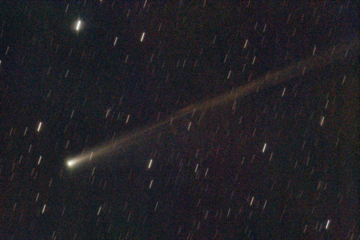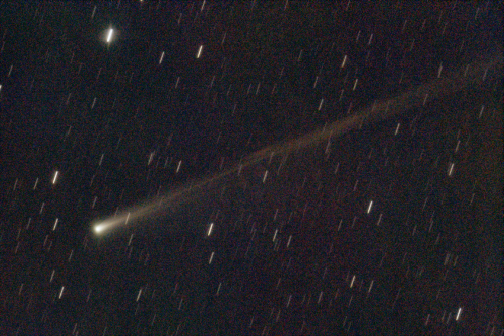Ο κομήτης C/2025 A6 (Lemmon) στις 24 Οκτωβρίου 2025, τρεις ημέρες μετά την εγγύτερή του προσέγγιση στη Γη. Διακρίνεται η πράσινη κόμη, η ουρά σκόνης και μακριά, μπλε ουρά ιόντων. Εξοπλισμός: TS-Optics 70mm f/6 ED doublet με 0.8 μειωτή, SW SA 2i, μη τροποποιημένη Olympus E-PL5. Λήψη: 43x20s + 8x25s (συνολικός χρόνος, 17 λεπτά 40 δευτερόλεπτα) ISO 1600 frames από Βάι, Κρήτη (Β2-3). Επεξεργασία με DSS, SIRIL, GIMP και Ps