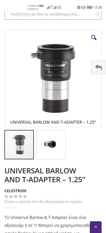 Καλημέρα έχω αύτο Barlow x2 της Sellestron έχει δοκίμασει κάνεις να μας πει γνώμη; Μετά από λίγες δοκιμές που έκανα και με χρήση Dslr δεν λέει και πολλά, ίσως με κάπια αστρονομική κάμερα να αξίζει.