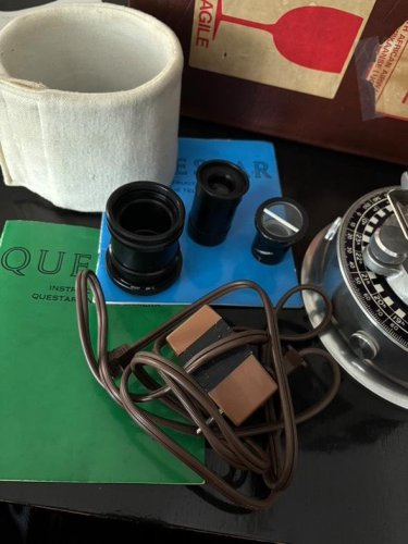 Maksutov–Cassegrain Διάσημο για την ποιότητα εικόνας, την οξύτητα και την κατασκευή υψηλής ακρίβειας. --- 🔭 2. Οπτικά Διάμετρος (Aperture): 3.5'' (89 mm) Εστιακή απόσταση: 1300 mm Εστιακός λόγος: f/14.4 Ενσωματωμένο finder scope (μέσω flip mirror) Υψηλής ποιότητας οπτικοί καθρέφτες (πολύ πιθανό Pyrex) --- 🌟 3. Βάση & μηχανικά Αλουμινένια κυκλική βάση (η ίδια που φαίνεται στη φωτογραφία) Ενσωματωμένος αργός μικρο-χειρισμός (slow motion controls) Σπειροειδές σύστημα εστίασης χωρίς "τζόγο" Ενσωματωμένος δεξιόστροφος ηλεκτρικός μηχανισμός drive (AC drive στις παλιές εκδόσεις) --- 🎒 4. Θήκη & εξαρτήματα original full set Αυθεντική δερμάτινη καφέ θήκη με μπλε βελούδο μέσα Τρία ποδαράκια αλουμινίου (legs) Sun filter Eyepieces ( 16mm και 24mm) Πινέλο καθαρισμού Θήκες φακών από δερματίνη Manual εποχής (1980s) Καλώδιο ρεύματος (AC cord) Μεγέθυνση Ανάλογα με τον φακό: 50× – 80× με 24mm 80× – 130× με 16mm Με optional Barlow μπορεί να πάει 200× και πάνω --- 📏 6. Αξία κατασκευής Τα Questar 3.5 είναι χειροποίητα στις ΗΠΑ, με: ανοδιωμένο μπλε σωλήνα χαραγμένες ουράνιες συντεταγμένες στην κάσα lifetime precision μηχανισμό --- Questar Standard 3.5" – Year 1986 – Full Original Kit με όλα τα βασικά εξαρτήματα, θήκη και γνήσιο manual. Είναι συλλεκτικό και σε πολύ καλή κατάσταση. -