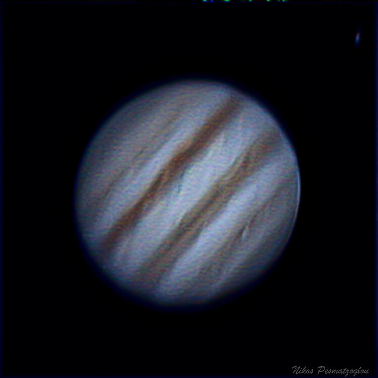 Φωτογράφιση του Δία/Κρόνουscipii απάντησε στην συζήτηση του/της tkarachalios σε Φωτογράφηση ηλιακού συστήματος Μιας που έχουμε περίπου το ίδιο θέμα Το Σάββατο αργα το βράδυ είχε έρθει ο murcielago να κάνουμε παρέα Με το δικό μου Skywatcher 130/900 (με μοτέρ αλλα οκ αμα εχεις σταθερο χερι δεν ειναι απαραίτητο), την δική του CANON 550 και τον δικό του Powermate 5x τραβήξαμε την παρακάτω φωτογραφία (την επεξεργασία την έκανα εγώ με Pipp, autostakkert και Registax). Το video ηταν 3λεπτο νομίζω Προφανώς λοιπόν το θέμα δεν είναι στο τηλεσκόπιο η σε άγνοια προγραμμάτων αλλά στο συνδυασμό του με τον εξοπλισμό. Υποθέτω πως επειδή το ίδιο το τηλεσκόπιο δεν είναι ιδιαίτερα δυνατό, με αντίστοιχα αδύναμο εξοπλισμό για τη φωτογράφιση δυσκολεύει το θέμα. Προσωπικά αποφάσισα να αρχίσω λιγο λιγο να μαζεύω λεφτά για μια κάμερα στυλ ASI120 και μέχρι τότε θα ψαχνω τα Messier Διας