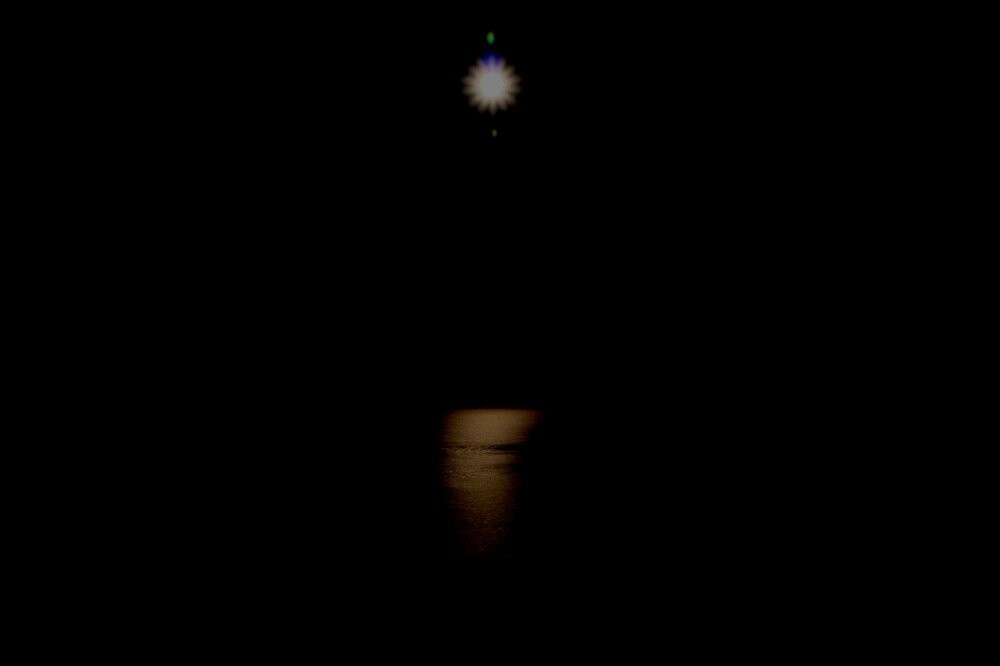 Φίλε hgg, Αν η θάλασσα ήταν μια εντελώς λεία επιφάνεια θα βλέπαμε μια λωρίδα φωτός που φτάνει ως τα μάτια μας. Όπως σίγουρα όλοι έχουμε δει και θαυμάσει. Πιθανόν είναι επίσης, και εσύ το ίδιο βράδυ όταν φωτογράφιζες αυτό το πολύ ωραίο κάδρο, να την έβλεπες αυτή τη λωρίδα. Είναι έτσι; Η θάλασσα προφανώς δεν είναι μια εντελώς λεία επιφάνεια και δεν μπορεί να κάνει την τέλεια ανάκλαση όπως τη φανταζόμαστε, έχει κυματάκια, ρεύματα όπως προαναφέρθηκε, που αυξάνουν το φαινόμενο της διάχυσης του φωτός σε κάποια σημεία (σκοτεινές περιοχές γιατί το φως διασκορπίζεται σε διάφορες κατευθύνσες και δεν έρχεται όλο στο μάτι μας) Η φωτογράφηση ενισχύει αυτό το φαινόμενο, γιατί σκοτεινιάζει ακόμα περισσότερο τις σκοτεινές περιοχές που με το μάτι ίσως δεν φαίνονται κιόλας, καθότι μια περιοχή μπορεί πολύ γρήγορα να γίνεται από σκοτεινή, φωτεινή και ξανά απ την αρχή! Μη ξεχνάμε ότι η θάλασσα είναι υγρή, και κινείται. Έτσι εξηγούνται τα κενά τη συγκεκριμένη χρονική στιγμή που πάρθηκε η φωτογραφία. Ας έρθουμε τώρα στο φαινομενικό τρίγωνο που λές ότι φαίνεται. Σκέψου ένα δρόμο ενός χιλιομέτρου σε ευθεία με μικρούς ανακλαστήρες στο οδόστρωμα. Αν είσαι μέσα στο αυτοκίνητο και φωτίσεις το δρόμο, μπορείς να παρατηρήσεις ότι οι πιο κοντινοί σε σένα ανακλαστήρες, ξεχωρίζουν ο ένας απο τον άλλο. Όσο φεύγει το μάτι σου προς τα μέσα όμως το πράγμα ενοποιείται! όχι φυσικά γιατί είναι το ένα δίπλα στο άλλο. Απλά η προοπτική σου τα φέρνει το ένα κοντά στο άλλο. Παρόμοια είναι τα πράγματα στη θάλασσα, μόνο που η σειρά των ανακλαστήρων έχει το πάχος της λωρίδας που βλέπεις. Το πάχος που βλεπεις στα βαθιά!! Η παρομοίωση με τους ανακλαστήρες δεν είναι τόσο παρομοίωση, κάπως έτσι λειτουργεί η θάλασσα. Όσο το μάτι κοιτάει πιο κοντά, χάνεται η έννοια της προοπτικής σταδιακά, και γι αυτό μειώνεται το πάχος της λωρίδας μέχρι να φτάσει μπροστά σου και να γίνει, μερικές απλές ανακλάσεις εδώ και κεί. Αυτή η μείωση της προοπτικής μάλιστα είναι γραμμική, γι αυτό και φαίνεται ότι συγκλίνει η λωρίδα προς τον παρατηρητή. Η απόδειξη γι αυτά που λεώ; Φαντάσου ότι μπορείς να περπατήσεις πάνω στον νερό χωρίς να αναταράξεις τα νερά. (νοητικό πείραμα είναι, οτι θέλουμε κάνουμε). Σε προκαλώ λοιπόν αφού περπατάς σας τον ιησού πάνω στο νερό, να φτάσεις την περιοχή που λες ότι είναι λαμπερή, και σχηματίζει τα τρίγωνα. Όσο και να προσπαθείς, πάντα μπροστά σου θα βλέπεις τις λίγες φωτεινές ανακλάσεις και πάντα στο βάθος θα δεσπόζει το τρίγωνο που ουσιαστικά ΔΕΝ ΥΠΑΡΧΕΙ!! -