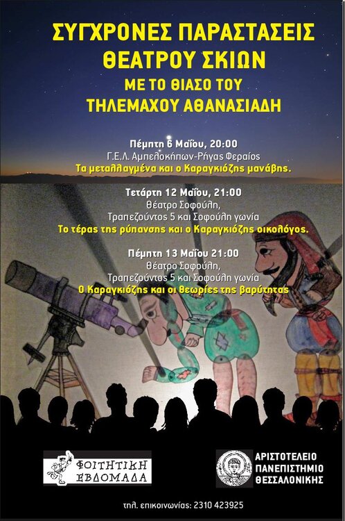 Ένα δείγμα απο τη χθεσινή παράσταση " Ο Καραγκιόζης και οι θεωρίες της βαρύτητας" Δείτε το μέχρι το τέλος που γίνεται η ολικότητα!!! υ.γ. Θα το κανονίσουμε κάποια στιγμή.. χρόνος να υπάρχει.. -