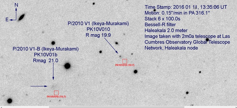 Ο κομήτης είχε σπάει σε δύο κομμάτια παλιότερα, ενώ τώρα εντοπίστηκαν άλλα δύο. Σύνολο 4 αλλά είναι πολύ αμυδρός. Εικόνα από τον Charles Bell -