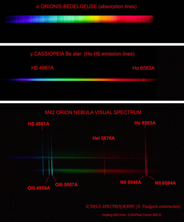 Πωλούνται δύο φασματογράφοι για αστρονομική χρήση. Τοποθετούνται σε καταδιοπτρικό τηλεσκόπιο (κυρίως). Διαθέτουν δύο εξόδους: την έξοδο για τη λήψη φάσματος με τοποθέτηση οποιασδήποτε φωτογραφικής μηχανής ή CCD κάμερας και την έξοδο οδήγησης, στην οποία γίνεται η τοποθέτηση οδηγητικής κάμερας στην οποία απεικονίζεται η σχισμή του φασματογράφου και ο στόχος απο το φως του οποίου θα ληφθεί το φάσμα. Η λήψη του φάσματος επιτυγχάνεται με την στόχευση του αντικειμένου επάνω στη σχισμή. Διατίθενται αρκετά PDF ως εισαγωγικά μαθήματα, φασματικοί χάρτες, οδηγίες, λαμπτήρες βαθμονόμησης κτλ. πληροφορίες 6977410452 Αριστείδης Βούλγαρης