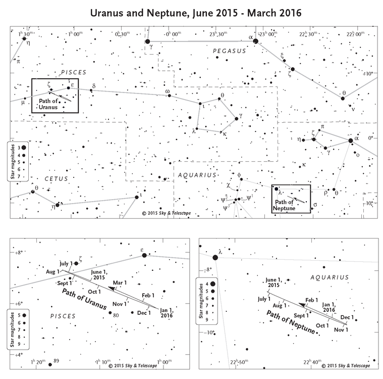 Την 1η Σεπτεμβρίου ο Ποσειδώνας βρέθηκε σε αντίθεση. Με φαινόμενο μέγεθος +7.8 και φαινόμενη διάμετρο 2,3 δεύτερων λεπτών της μοίρας εμφανίζεται σαν ένας μικρός γαλαζωπός δίσκος στα τηλεσκόπια. Μπορείτε να τον αναζητήσετε στον αστερισμό του Υδροχόου, μεσουρανώντας μετά τη 1 τη νύχτα. Στο συνημμένο χάρτη του Sky and telescope, μπορείτε να δείτε τη θέση του Ποσειδώνα και του Ουρανού (που θα βρεθεί σε αντίθεση τον Οκτώβριο).