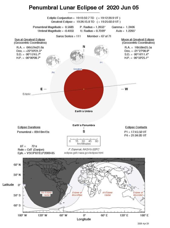 12. Απόψε Παρασκευή 5/6 θα έχουμε τη δυνατότητα να παρατηρήσουμε από την Ελλάδα μια έκλειψη παρασκιάς της Σελήνης. Η έκλειψη παρασκιάς είναι λιγότερο εμφανής σε σχέση με μια έκλειψη σκιάς και ένας ανυποψίαστος παρατηρητής δε θα το αντιλαμβανόταν εύκολα. Οι προσεκτικοί παρατηρητές μπορούν να διακρίνουν ένα ελαφρύ, αρχικά, σκοτείνιασμα της Σελήνης που θα γίνει έντονο κοντά στο μέγιστο της έκλειψης. Το μέγιστο θα σημειωθεί στις 22:26. Οι ώρες του φαινομένου έχουν ως εξής σε ώρα Ελλάδας: Έναρξη: 20:45 (Η Σελήνη θα έχεις μόλις ανατείλει) Μέγιστο: 22:26 Λήξη: 00:04 Φωτογραφικά η διαφορά στη φωτεινότητα είναι πιο εύκολο να αποτυπωθεί και το θέαμα προσφέρεται τόσο για παρατήρηση όσο και για φωτογράφιση.