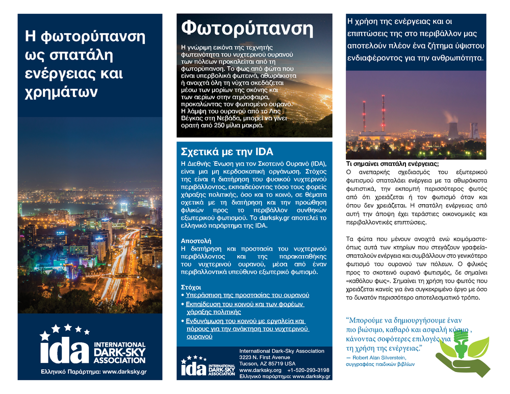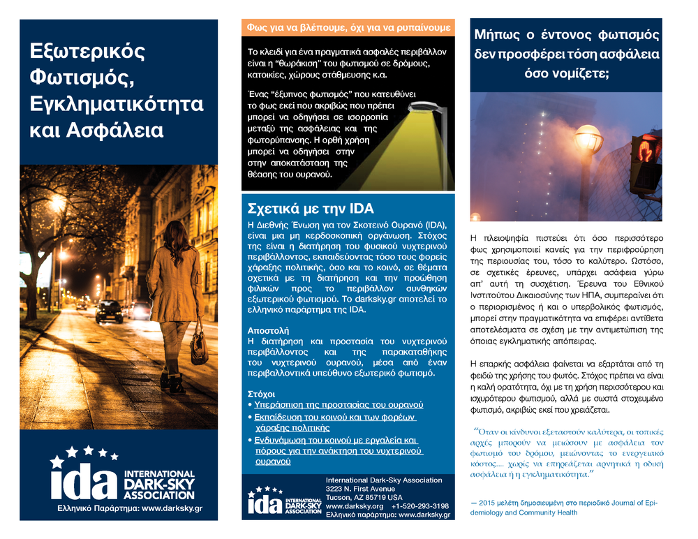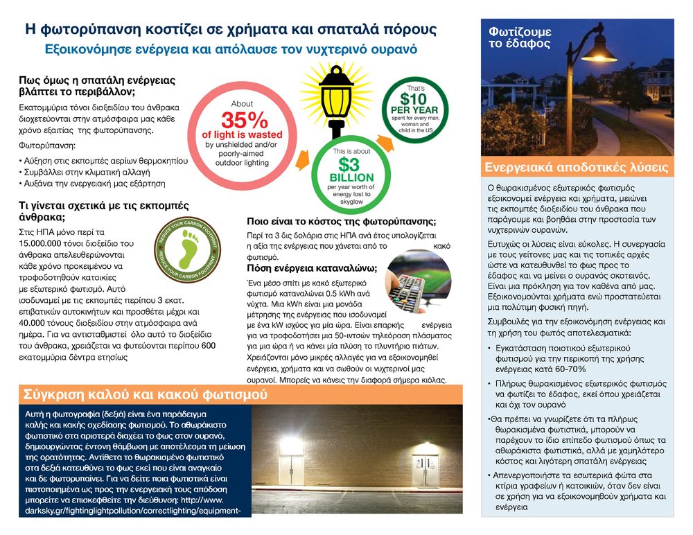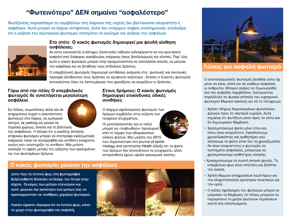 21. Διεθνής εβδομάδα σκοτεινών ουρανών Συμβουλή #1: Περισσότερος φωτισμός δε συνεπάγεται περισσότερη ασφάλεια. Η ασφάλεια βρίσκεται στον σωστό φωτισμό που αυξάνει την οπτική άνεση και την ορατότητα και ταυτόχρονα μειώνει τη θάμβωση.
