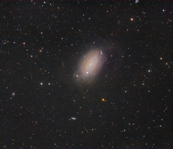 45 εκατομμυρια ετη φωτός από τη Γη, στον Πήγασο, βρίσκεται ο πολύ όμορφος και λαμπερός σπειροειδής ngc7331, ένας γαλαξίας πολύ όμοιος με τον δικό μας. Δεσπόζει στην εικόνα, μαζί με ολόκληρη ομάδα μακρυνότερων γαλαξιών (μαζί και το Stephan''s Quintent). Επαναεπεξεργασία αυτής της φωτογραφίας με καινουργια εργαλεια. Κορινθία 2017-08-19,20,21 Λήψη : FSQ-106N @ f/5 + QHY-22 @ -20C + Baader filters - MaximDL - Οδήγηση : SX OAG + Meade DSI - NEQ6 Επεξεργασία : Pixinsight 1.8.9.2 1.77 arcs/pix, drizzle x 2 , effective 0.88 arcs/pixel L: 12x600sec RGB: 12x300sec each