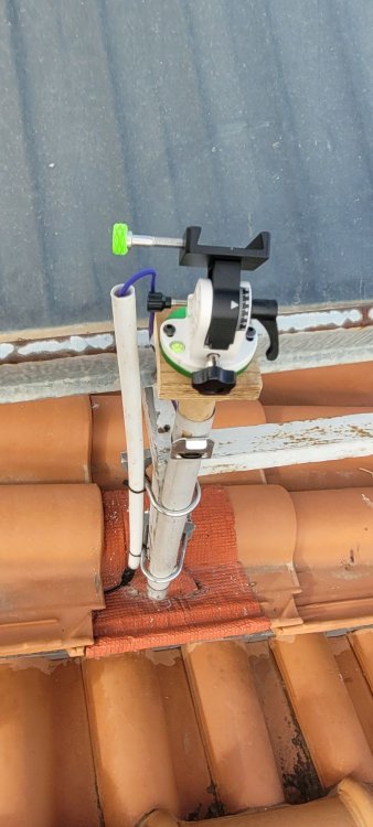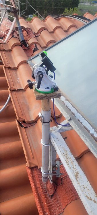 Δεν έχω τρίποδο, έχω βιδώσει τη σφήνα σε μια ιδιοκατασκευή η οποία είναι αλφαδιασμένη και βιδωμένη με στηρίξεις κεραίας. H σωλήνα είναι από παλιά ηλεκτρική σκούπα😁όπου προσάρμοσα ένα κυλινδρικό ξύλο από φτυάρι 😁 στην κορυφή μαζί με την μικρή πλατφόρμα από κόντρα πλακέ θαλάσσης. Έδωσα μεγάλη σημασία ώστε να είναι αλφάδιασμένη η βάση σε όλους τους άξονες. Στις φωτογραφίες φαίνεται και η πλαινή σωλήνα της τροφοδοσίας όπως και το 3d printed κάλυμμα για τη βίδα στήριξης του dovetail. Την ημέρα σκεπάζω με ένα μεταλλικό δοχείο για αποφυγή φθοράς από ήλιο, κλπ. Το stock τρίποδο το έχω κρατήσει για ηλιακή παρατήρηση και ταξίδια.