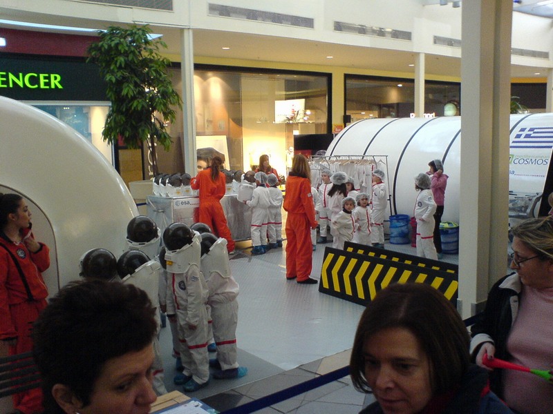 Παιδια, στο Cosmos Medditeranean στην Θεσσαλονικη εγινε επισκεψη απο εξωγηινα οντα! Το υψος τους δεν υπερβαινανε τα 60 εκατοστα και ηταν ολα ηλικιας κατω των 5 ετων!!! Ειναι παιδακια που επισκεφτηκαν την εκθεση Διαστηματος που γινεται εδω και καποιες μερες σε συνεργασια με την ESA. Τα παιδακια ειχαν τρελαθει! Τους δειχνουν Slideshows, και τους φορανε μικρα σκαφανδρακια και διαστημικες στολες!!! Ειναι πολυ ομορφα γενικως!! Δειτε τις φωτο και θα καταλαβετε!! -