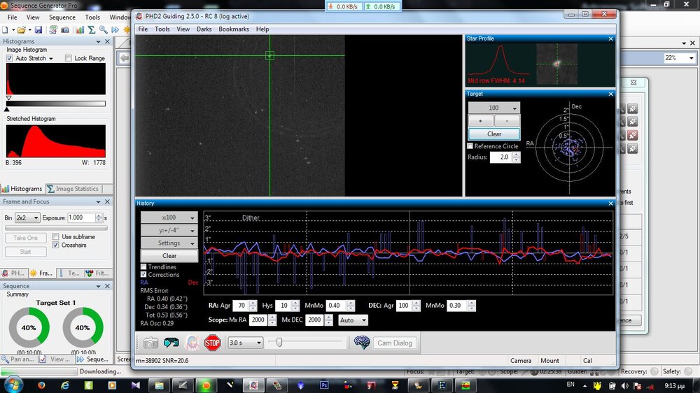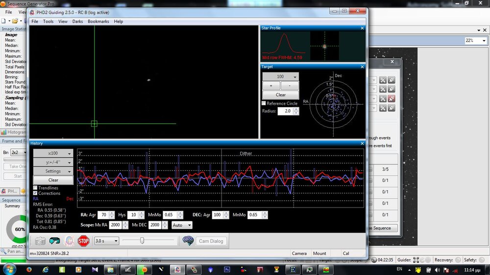 Μια τελευταία ενημέρωση μιας και εχθές μπηκε το τελευταίο καρφί στο φέρετρο που λέγεται κακή οδηγηση και και παίδευε τόσα χρόνια. Πήρα το τρίποδο της berlebach που ήταν σε αγγελια από μέλος του φόρουμ μιας και ήθελα να έχω πιο σταθερη πλατφόρμα φωτογράφισης αλλά και επειδή τον τελευταίο καιρό ζοριζόταν η βάση κατα την ευθυγράμμιση στο αζιμούθιο και δεν ήθελα να χαλάσω τις στροφές της κεφαλής. Εχθές έκανα την πρώτη φωτογράφιση και πέραν του γεγονότος ότι η ρύθμιση στο αζιμούθιο είχε ''βουτιρένια'' αίσθηση κατά την οδήγηση έμεινα με το στόμα ανοιχτό. Η γραμμή της οδήγησης ήταν σχεδόν επίπεδη και η χειρότερη οδήγηση που έκανα ήταν η καλύτερη που είχα μέχρι στιγμής με το εργοστασιακό τρίποδο. Το σύμπερασμα είναι ότι όσοι κάνουν αστροφωτογραφία με τα τρίποδα της skywatchwer θα πρέπει είτε να ενισχύσετε, ή να τα αλλάξετε με πιο στιβαρά τρίποδα κατά προτίμηση ξύλινα. Όμως μιας και τα οικονομικά όλων μας είναι δύσκολα αυτές τις ημέρες, βρήκα τα παρακάτω βίντεο τα οποία μπορούν να βοηθήσουν στην ενίσχυση του τριπόδου. http://www.tpiastro.com/spreaders.htm http://www.dangl.at/ausruest/eq6/eq6_e.htm ενα preview απο 25χ300 L καρέ που πήρα PHD2_GuideLog_2015-09-13_204948.txt