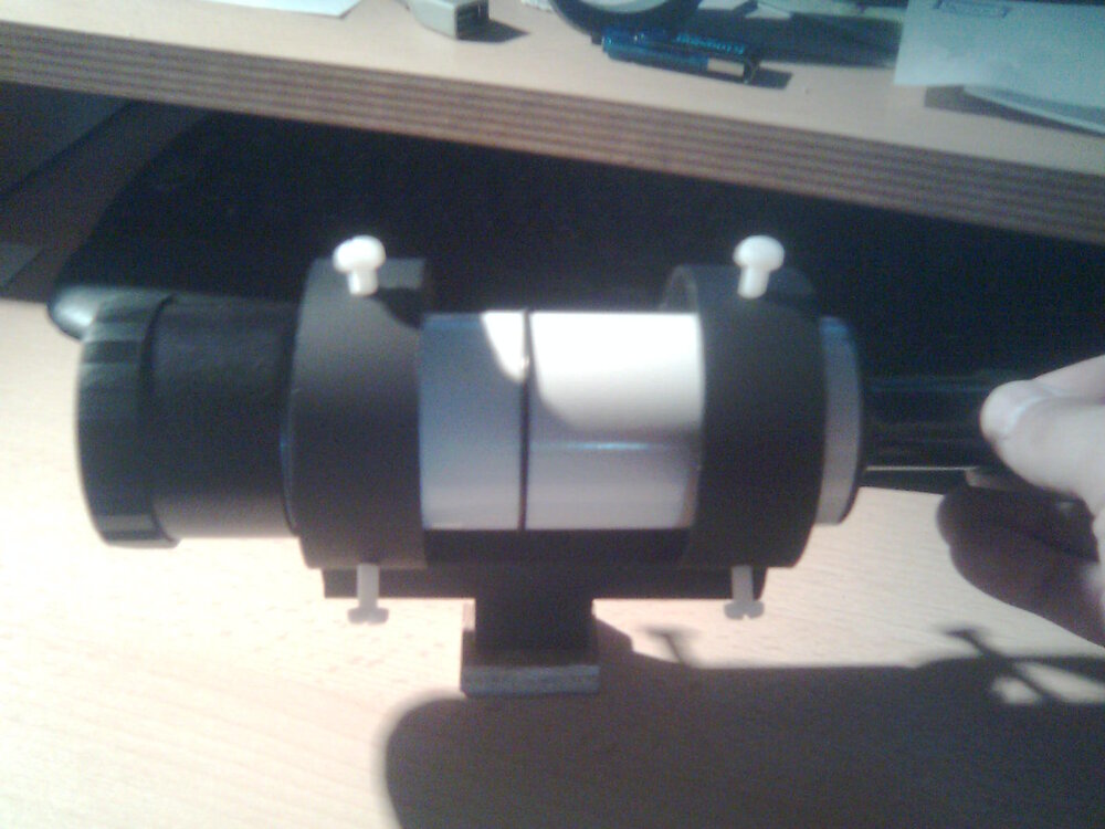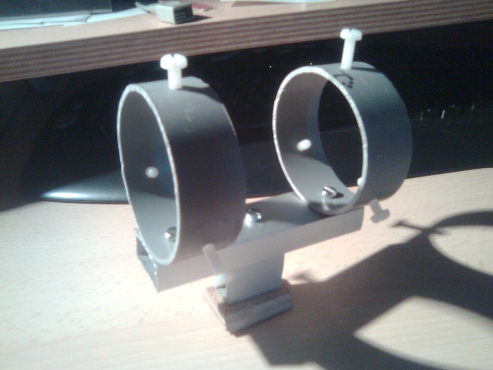 μιας και αρχισαμε σχεδον ολοι μας να κανουμε οδηγηση με τον ερευνητη 9χ50 χαρις στον Αγγελο αποφασισα να φτιαξω οδηγητικα δαχτυλιδια μιας και η αρχικη βαση του ερευνητη δεν ειχε πολυ χωρο για να κινηθει ο ερευνητης. τα υλικα που χρησιμοποιησα ειναι σωληνας φ75 (75 χιλιοστα διαμετρο και μηκος 30χιλ. ) 6 πλαστικες βιδες Μ5 (τις βρηκα στον φανο, Σολωμου 40 πισω απο την Στουρναρα, μαγαζι ηλεκτρονικων εξαρτηματων) τρεις βιδες 5 χιλ. και αντιστοιχα παξιμαδια καθως και μια βιδα 5χιλ. με πλατυ κεφαλι για την βαση. τα πλαστικα δαχτυλιδια τα τρυπισα με ενα τρυπανι 4.8 χιλ και με ενα βιδολογο Μ5 εκανα τις στροφες στους σωληνες και ετσι μπορω να μετακινω τον ερευνητη. εαν δεν βρητε βιδολογο μπορειτε να κολησετε πλαστικα παξιμαδια Μ5 (παλι τα πηρ απο τον φανο) με κολλα για για πλαστικους σωληνες προσοχη στην ποσοτητα μια σταγονα πιστευω ειναι αρκετη. τα δαχτυλιδια αυτα τα βιδωσα σε ενα ενα κοματι αλουμινιο διαστασεων 15χιλ. χ 120χιλ. χ 30χιλ. και εκανα την μια τρυπα στο σημειο που ειναι το αυλακι απο τον ερευνητη για να μπορει να τοποθετηθει οπως την αρχικη βαση και να μην υπαρχει κινδυνος να πεσει σε καθετη θεση του τηλεσκοπιου. για να κανω την καθετη βαση απλα εκοψα ενα αλλο κομματι απο το ιδιο αλουμινιο αλλα με μηκος 35 χιλ. τελος για την βαση που μπαινει στο θυλικο μερος που καθεται στο τηλεσκοπιο ακοψα ενα κομματι κοντρα πλακε μιας και δεν εβρισκα μασιφ σιδερο στις διαστασεις που ηθελα αντιγραφοντας την βαση του αρχικου ερευνητη. επειδη ειναι τραπεζιο το σχημα οι διαστασεις ειναι 31χιλ χ 41 χιλ η μεγαλη βαση, υψος 9χιλ και η μικρη βαση 41χιλ χ 23 χιλ. καλυτερα ομως να κοψετε σε λιγο μεγαλυτερες διαστασεις και με ενα γυαλοχατρο να το φερετε στις διαστσεις ωστε να χωραει να μπει στην βαση στο τηλεσκοπιο. εδω πρεπει να προσεξετε οτι το βιδωμα θα γινει με την βιδα με το πλατυ κεφαλι και θα πρεπει να κανετε μια τρυπα ωστε να το κεφαλι της βιδας στο τελος να μην εξεχει απο το κοντρα πλακε γιατι δεν θα μπαινει στην βαση του τηλεσκοπιου. επειδη ο ερευνητης ειναι εμπροσθοβαρος και θα εχει την ταση να γυρισει η βαση προς τα κατω αναμεσα στο κοντρα πλακε και την αλουμινενια στηριξη εβαλα ενα κομματι λαστιχο και εσφιξα γερα την βιδα. μπορειται να βαλετε εδω και παξιμαδι ασφαλειας αλλα δεν ξερω εαν θα κρατησει. τελος ενα μαυρο βαψιμο και ειμαστε ετοιμοι συγγνωμη για τισ φωτο ειναι απο το κινητο μου μιας και δεν ειχα διαθεσιμη φωτογραφικη μηχανη οταν εκανα την κατασκευη ο ερευνητης επανω στο τηλεσκοπιο το μαυρο λαστιχο αναμεσα στην βαση και την στηριξη βαμενο μαυρο και με τον ερευνητη επανω τελικο αποτελεσμα δενοντας τα ολα μαζι. δεν χω βαλει τα παξιμαδια, θα σας παιδεψει εδω το βιδωμα αλλα με ενα τσιμπιδακι απο την μερια του παξιμαδιου θα βοηθησει ξυλινη βαση διαφορεσ βιδες 5 χιλ. αλουμινενια στηρηξη αλουμινενια βαση για δαχτυλιδια σωληνας φ75 Πλαστικα παξιμαδια Μ5 Πλαστικες βιδες Μ5