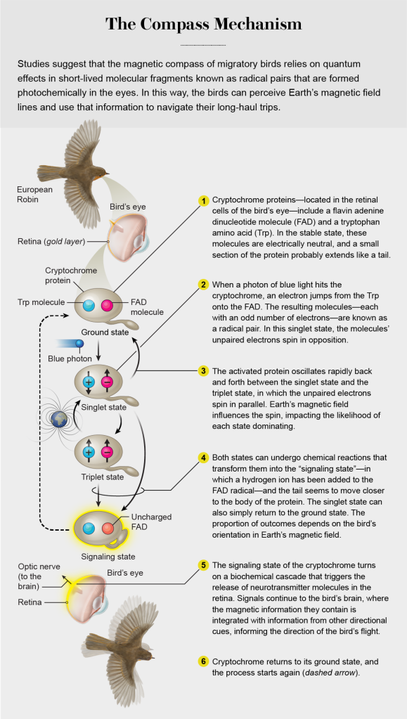 Η βιολογική πυξίδα των πτηνών. Έχει περάσει ένας αιώνας από τότε οι επιστήμονες άρχισαν να υποψιάζονται ότι κάποια ζώα προσανατολίζονται με βάση το μαγνητικό πεδίο της Γης. Μια νέα μελέτη επιχειρεί να ρίχνει νέο φως στη βιολογική πυξίδα των πτηνών.Το 1882, ο γάλλος ζωολόγος Καλί Βιγκιέ πρότεινε τη θεωρία ότι τα πτηνά και άλλα ζώα μπορούν να αντιλαμβάνονται το μαγνητικό πεδίο της Γης ανιχνεύοντας ανεπαίσθητα ηλεκτρικά σήματα που παράγονται στα αφτιά τους. Η ικανότητα αρκετών μεταναστευτικών ζώων να προσανατολίζονται με κάποιου είδους βιολογική πυξίδα έχει έκτοτε επιβεβαιωθεί, όμως ο μηχανισμός που πρότεινε ο Βιγκέ πέρασε στη βιβλιογραφική λήθη και έδωσε τη θέση του σε άλλες υποθέσεις. Και τώρα, ξαφνικά, επανέρχεται.Μελέτη που δημοσιεύεται στο Science δείχνει ότι τα περιστέρια όντως αντιλαμβάνονται το μαγνητικό με τα αφτιά, και συγκεκριμένα με τους ημικύκλιους σωλήνες του λαβυρίνθου, μια δομή γεμάτη υγρό που ανιχνεύει επιταχύνσεις και προσφέρει έτσι αίσθηση της κίνησης και της ισορροπίας. Η μετατόπιση του υγρού μέσα στους σωλήνες ενεργοποιεί μικροσκοπικά τριχίδια που στέλνουν σήματα στον εγκέφαλο. Και, επειδή οι τρεις σωλήνες είναι κάθετοι ο ένας στον άλλο, τα σήματα δίνουν πληροφορίες για την κίνηση κατά μήκος, κατά πλάτος, και κατά ύψος.Όπως αποκαλύπτει η νέα μελέτη, το μαγνητικό πεδίο γίνεται αντιληπτό με παρόμοιο μηχανισμό. Καθώς τα πτηνά κινούν το κεφάλι, το μαγνητικό πεδίο δημιουργεί επαγωγικά ηλεκτρικά ρεύματα στο υγρό του λαβυρίνθου, τα οποία ανιχνεύονται από ειδικά τριχίδια με μαγνητικές ιδιότητες. Μαγνητικά πειράματα Η μελέτη ξεκίνησε αντλώντας έμπνευση από τους καρχαρίες και τα σαλάχια, τα οποία αντιλαμβάνονται τα ασθενή ηλεκτρικά σήματα της λείας τους μέσω κυτταρικών υποδοχέων που αντιδρούν σε αλλαγές της τάσης. Οι ερευνητές αναρωτήθηκαν αν παρόμοιοι πρωτεϊνικοί υποδοχείς υπάρχουν και στο αφτί των πτηνών. Σε ένα από τα πειράματα της μελέτης, απομόνωσαν και εξέτασαν μεμονωμένα τριχίδια των ημικύκλιων σωλήνων, στα οποία πράγματι ανίχνευσαν πρωτεΐνες που αντιδρούν στα ηλεκτρικά ρεύματα.Σε ένα δεύτερο πείραμα, οι ερευνητές ακινητοποίησαν περιστέρια σε έναν θάλαμο με μεταβαλλόμενο μαγνητικό πεδίο. Στη συνέχεια θανάτωσαν τα πειραματώζα και χρησιμοποίησαν ένα αντίσωμα για να εντοπίσουν τους νευρώνες του εγκεφάλου που είχαν ενεργοποιηθεί πρόσφατα. Τα αποτελέσματα έδειξαν ότι το μαγνητικό πεδίο όντως ενεργοποιεί περιοχές του εγκεφάλου που δέχονται σήματα από τους ημικύκλιους σωλήνες, κάτι που δεν καταγράφηκε σε ακινητοποιημένα περιστέρια που δεν εκτέθηκαν σε μαγνητικό πεδίο.Ένα άλλο σημαντικό εύρημα είναι ότι ο εγκέφαλος των περιστεριών λάμβανε μαγνητικά σήματα ακόμα και στο σκοτάδι, κάτι που διαψεύδει μια άλλη δημοφιλή θεωρία, σύμφωνα με την οποία η βιολογική πυξίδα των πτηνών βρίσκεται στα μάτια. Σύμφωνα με αυτή την υπόθεση, το μαγνητικό πεδίο επηρεάζει το κβαντικό σπιν εξειδικευμένων υποδοχέων στον αμφιβληστροειδή, επιτρέποντας έτσι στο ζώο να «βλέπει» το πεδίο. διαβάστε σχετικά: Πώς τα αποδημητικά πτηνά χρησιμοποιούν τα κβαντικά φαινόμενα για να πλοηγηθούν (www.scientificamerican.com) https://www.scientificamerican.com/article/how-migrating-birds-use-quantum-effects-to-navigate/ Παρόλα αυτά, η μελέτη δεν αρκεί για να διαψεύσει μια δεύτερη γνωστή θεωρία, σύμφωνα με την οποία τα πτηνά φέρουν στο ράμφος τους μικροσκοπικούς κρυστάλλους από σίδηρο που περιστρέφ