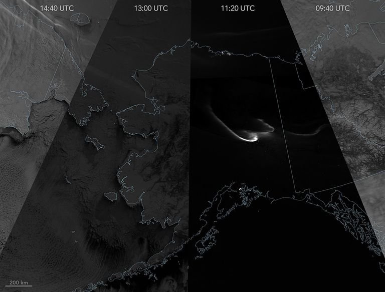 Σκιές μιας σεληνιακής έκλειψης. Μια σειρά από νυχτερινές δορυφορικές εικόνες αποκάλυψαν πώς το φως του φεγγαριού που έφτανε στη Γη ποικίλλει κατά τη διάρκεια μιας ολικής σεληνιακής έκλειψης. Στις 3 Μαρτίου 2026, η Γη ευθυγραμμίστηκε ακριβώς ανάμεσα στη Σελήνη και τον Ήλιο, ρίχνοντας τη σκιά της στην πανσέληνο. Η ολική σεληνιακή έκλειψη ήταν ορατή σε όλη την Αμερική, την Ανατολική Ασία, την Αυστραλία και τον Ειρηνικό. Οι παρατηρητές του ουρανού σε αυτά τα μέρη του κόσμου μπορεί να έχουν γίνει μάρτυρες μιας « Ματωμένης Σελήνης », όταν η θαμπή σεληνιακή επιφάνεια έγινε προσωρινά πορτοκαλοκόκκινη.Εν τω μεταξύ, οι δορυφόροι παρατήρησαν την επίδραση της σκοτεινιασμένης Σελήνης στην επιφάνεια της Γης. Οι αλλαγές στην ποσότητα του σεληνιακού φωτός που αντανακλάται πίσω στη Γη καθώς προχωρούσε η έκλειψη εμφανίζονται σε αυτή τη σύνθετη εικόνα, η οποία αποτελείται από νυχτερινές παρατηρήσεις που πραγματοποιήθηκαν από το VIIRS (Visible Infrared Imaging Radiometer Suite) στον δορυφόρο NOAA-21 . Ο δορυφόρος συνέλεγε αυτές τις εικόνες της Αρκτικής περίπου κάθε 100 λεπτά, με τις προηγούμενες λωρίδες προς τα δεξιά και τις μεταγενέστερες λωρίδες προς τα αριστερά.Η ζώνη ημέρας-νύχτας VIIRS ανιχνεύει το νυχτερινό φως σε μια περιοχή μηκών κύματος από πράσινο έως εγγύς υπέρυθρο και χρησιμοποιεί τεχνικές φιλτραρίσματος για να παρατηρήσει σήματα όπως τα φώτα της πόλης, το ανακλώμενο φως του φεγγαριού και το σέλας. Η πιο σκοτεινή λωρίδα λήφθηκε στις 11:20 Παγκόσμια Ώρα (2:20 π.μ. Τυπική Ώρα Αλάσκας), περίπου 15 λεπτά μετά την έναρξη της ολικής φάσης. Με πολύ λίγο φως του φεγγαριού να φτάνει στη Γη, λωρίδες φωτός από το Βόρειο Σέλας λάμπουν, μαζί με κηλίδες τεχνητού φωτός από οικισμούς στο Γιούκον και την ανατολική Αλάσκα.Όταν ο δορυφόρος πέρασε πάνω από τη δυτική Αλάσκα και τον Βερίγγειο Πορθμό, στις 13:00 Παγκόσμια Ώρα (4:00 π.μ. Τυπική Ώρα Αλάσκας), η έκλειψη βρισκόταν στη μερική φάση. Το σκηνικό είναι αισθητά φωτεινότερο από την προηγούμενη και το φως από τη μερικώς σκιασμένη Σελήνη φωτίζει την χιονισμένη τοπογραφία και τα ανοιχτά σύννεφα. Οι φωτεινότερες λωρίδες στην άκρη δεξιά και αριστερή πλευρά ελήφθησαν πριν και μετά την έκλειψη, αντίστοιχα, με φως από την πανσέληνο.Η επόμενη ευκαιρία να παρακολουθήσετε μια ολική έκλειψη σελήνης θα είναι στις 31 Δεκεμβρίου 2028 , όταν θα προσθέσει μια πινελιά αστρονομικής πινελιάς στους εορτασμούς της παραμονής της Πρωτοχρονιάς στην Ευρώπη, την Αφρική, την Ασία, την Αυστραλία και τον Ειρηνικό. Εικόνα από το Παρατηρητήριο της Γης της NASA από τη Michala Garrison, χρησιμοποιώντας δεδομένα ημέρας-νύχτας VIIRS από τα NASA EOSDIS LANCE , GIBS/Worldview και το Κοινό Πολικό Δορυφορικό Σύστημα (JPSS). Ιστορία από τη Lindsey Doermann. https://science.nasa.gov/earth/earth-observatory/shades-of-a-lunar-eclipse/