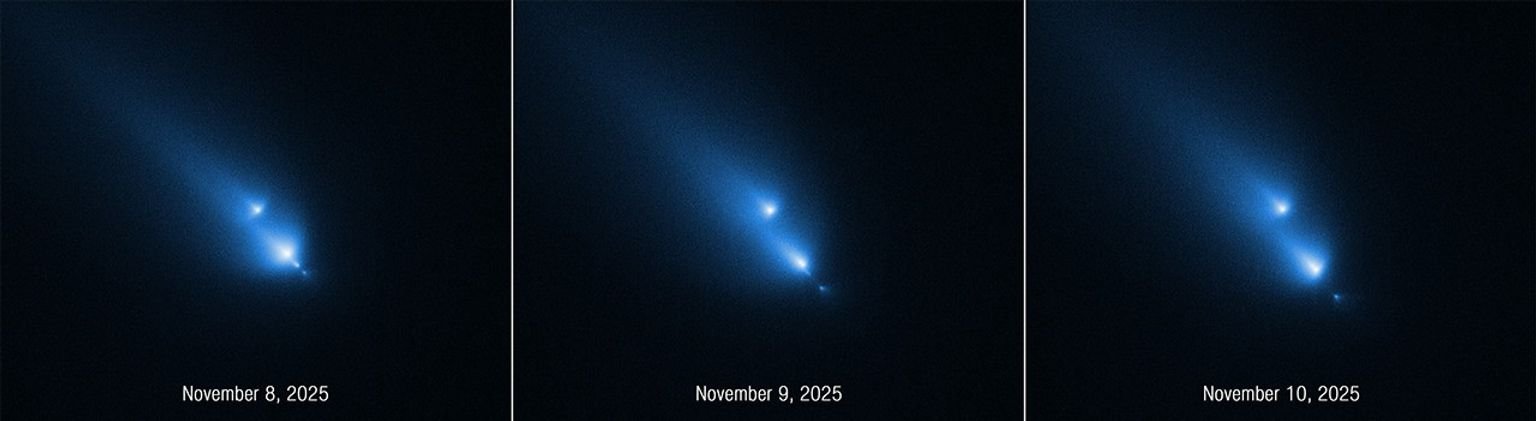 Το Hubble της NASA κατέγραψε απροσδόκητα τη διάσπαση κομήτη. Σε μια ευτυχή τροπή της μοίρας, το διαστημικό τηλεσκόπιο Hubble της NASA μόλις είδε έναν κομήτη να διαλύεται. Η πιθανότητα να συμβεί αυτό ενώ το Hubble παρακολουθούσε είναι εξαιρετικά ελάχιστη. Τα ευρήματα δημοσιεύθηκαν την Τετάρτη στο περιοδικό Icarus .Ο κομήτης K1, του οποίου το πλήρες όνομα είναι C/2025 K1 (ATLAS)—δεν πρέπει να συγχέεται με τον διαστρικό κομήτη 3I/ATLAS—δεν ήταν ο αρχικός στόχος της μελέτης του Hubble. «Μερικές φορές η καλύτερη επιστήμη συμβαίνει τυχαία», δήλωσε ο συν-ερευνητής John Noonan, καθηγητής έρευνας στο Τμήμα Φυσικής του Πανεπιστημίου Auburn στην Αλαμπάμα. «Αυτός ο κομήτης παρατηρήθηκε επειδή ο αρχικός μας κομήτης δεν ήταν ορατός λόγω κάποιων νέων τεχνικών περιορισμών αφότου κερδίσαμε την πρότασή μας. Έπρεπε να βρούμε έναν νέο στόχο - και ακριβώς τη στιγμή που τον παρατηρήσαμε, έτυχε να διαλυθεί, κάτι που είναι η ελάχιστη πιθανότητα».Ο Noonan δεν γνώριζε ότι ο K1 διασπόταν μέχρι που είδε τις εικόνες την επόμενη μέρα από την λήψη τους από το Hubble. «Ενώ έριχνα μια αρχική ματιά στα δεδομένα, είδα ότι υπήρχαν τέσσερις κομήτες σε αυτές τις εικόνες, ενώ εμείς προτείναμε να δούμε μόνο έναν», είπε ο Noonan. «Έτσι ξέραμε ότι αυτό ήταν κάτι πραγματικά, πραγματικά ξεχωριστό».Αυτό είναι ένα πείραμα που οι ερευνητές πάντα ήθελαν να κάνουν με το Hubble. Είχαν προτείνει πολλές παρατηρήσεις του Hubble για να εντοπίσουν έναν κομήτη που διαλύεται. Δυστυχώς, αυτές είναι πολύ δύσκολο να προγραμματιστούν και δεν ήταν ποτέ επιτυχημένες.«Η ειρωνεία είναι ότι τώρα μελετάμε απλώς έναν κανονικό κομήτη και αυτός θρυμματίζεται μπροστά στα μάτια μας», δήλωσε ο κύριος ερευνητής Ντένις Μπόντεγουιτς, επίσης καθηγητής στο Τμήμα Φυσικής του Πανεπιστημίου Όμπερν. «Οι κομήτες είναι απομεινάρια της εποχής του σχηματισμού του ηλιακού συστήματος, επομένως είναι φτιαγμένοι από «παλιά πράγματα» - τα αρχέγονα υλικά που έφτιαξαν το ηλιακό μας σύστημα», δήλωσε ο Bodewits. «Αλλά δεν είναι άθικτοι - έχουν θερμανθεί. Έχουν ακτινοβοληθεί από τον Ήλιο και από κοσμικές ακτίνες. Έτσι, όταν εξετάζουμε τη σύνθεση ενός κομήτη, το ερώτημα που έχουμε πάντα είναι: «Είναι αυτή μια πρωτόγονη ιδιότητα ή οφείλεται στην εξέλιξη;» Ανοίγοντας έναν κομήτη, μπορείτε να δείτε το αρχαίο υλικό που δεν έχει υποστεί επεξεργασία.»Το Hubble κατέγραψε τον K1 να θρυμματίζεται σε τουλάχιστον τέσσερα κομμάτια, το καθένα με ένα ξεχωριστό κώμα, το θολό περίβλημα αερίου και σκόνης που περιβάλλει τον παγωμένο πυρήνα ενός κομήτη. Το Hubble διέκρινε με σαφήνεια τα θραύσματα, αλλά στα επίγεια τηλεσκόπια, εκείνη την εποχή εμφανίζονταν μόνο ως μόλις διακριτές, φωτεινές σταγόνες.Οι εικόνες του Hubble τραβήχτηκαν μόλις ένα μήνα μετά την πλησιέστερη προσέγγιση του K1 στον Ήλιο, που ονομάζεται περιήλιο. Το περιήλιο του κομήτη βρισκόταν μέσα στην τροχιά του Ερμή, περίπου το ένα τρίτο της απόστασης της Γης από τον Ήλιο. Κατά τη διάρκεια του περιηλίου, ένας κομήτης βιώνει την πιο έντονη θέρμανση και τη μέγιστη καταπόνησή του. Ακριβώς μετά το περιήλιο είναι η περίοδος κατά την οποία ορισμένοι κομήτες μακράς περιόδου, όπως ο K1, τείνουν να διαλύονται. Πριν διασπαστεί, ο K1 ήταν πιθανότατα λίγο μεγαλύτερος από έναν μέσο κομήτη, πιθανώς με διάμετρο περίπου 8 χιλιόμετρα. Η ομάδα εκτιμά ότι ο κομήτης άρχισε να διαλύεται οκτώ ημέρες πριν τον δει το Hubble. Το Hubble τράβηξε τρεις εικόνες των 20 δευτερολέπτων, μία κάθ