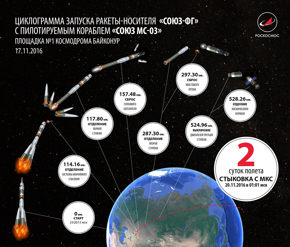 8. “Soyuz-2.1α” με TGK"Progress MS-07" Στις 6 Οκτωβρίου 2017 η μονάδα κεφαλής για τη μεταφορά του οχήματος φορτίου (THC) «Progress MS-07" παραδόθηκε από εργασίες στην περιοχή 254 στο συγκρότημα και κτίριο δοκιμής τοποθεσία 31 στο κοσμοδρόμιο Μπαϊκονούρ για τη γενική συναρμολόγηση με τον πύραυλο φορέα«Soyuz -2.1a. " Οι εργασίες προγραμματίζονται για τις 9 Οκτωβρίου 2017. https://www.roscosmos.ru/print/24187/