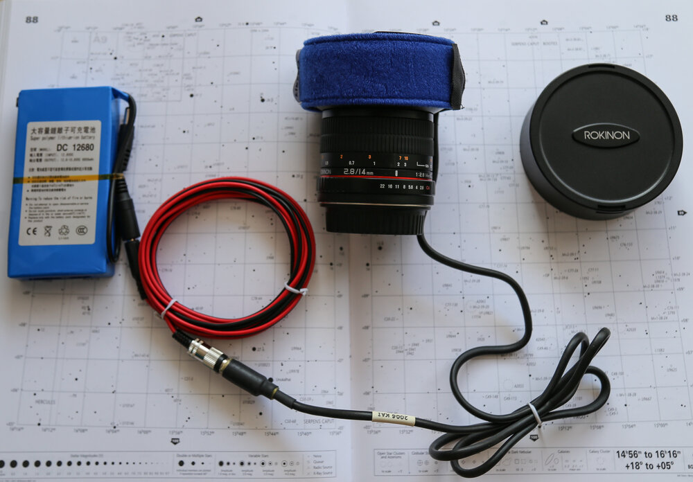 Η φωτογράφιση σε υγρό περιβάλλον την ημέρα μπορεί να μην είναι μεγάλο πρόβλημα, αλλά κατά τη διάρκεια της νύχτας η υγρασία μπορεί να σου καταστρέψει τις λήψεις πολύ γρήγορα. Το βράδυ η θερμοκρασία πέφτει σημαντικά, και σε υγρό περιβάλλον αυτό σημαίνει ότι πάνω στο φακό θα συμπυκνωθούν οι υδρατμοί και γρήγορα θα τα μαζέψεις, χάνοντας τη βραδιά στο καλό σενάριο - με προβλήματα στον εξοπλισμό από το νερό στο κακό σενάριο. Για να κρατήσω την υγρασία μακριά από το τεράστιο μπροστινό γυαλί του Rokinon 14mm χρησιμοποιώ τα εξής: 1. Li-ion Battery DC 12V 6800mAh (αγορασμένη από το ebay) 2. Dew Heater Adapter Cable - Female RCA to Male DC (αγορασμένο από http://pegasusastro.com/ ) 3. Dew heater strap (αγορασμένο από http://pegasusastro.com/ ) Με αυτό το set up μπορώ να φωτογραφίσω τη νύχτα χωρίς έγνοια, κρατώντας μακριά την υγρασία για αρκετές ώρες (πολύ σημαντικό για τις βροχές μετεώρων ή για timelapse, όπου η κάμερα κάνει εκαντοντάδες λήψεις συνολικής διάρκειας πολλών ωρών). -