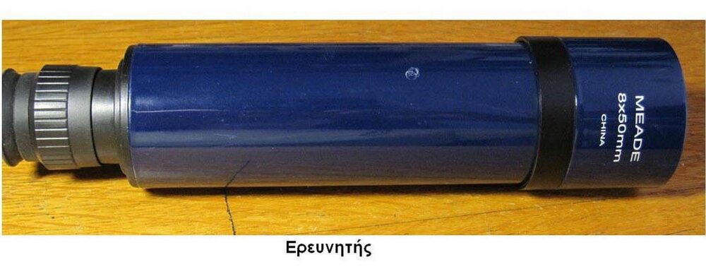 Πωλείται Ηλιακό τηλεσκόπιο Coronado της γραμμής Calcium με χαρακτηριστικά : D = 40 mm FL = 400 mm ( F/10 ) -1- Προσοφθάλμιο 12 mm Kellner Δεν χρειάζεται καμία ρύθμιση. Το νετάρισμα γίνεται με την μεγάλη βίδα στο πίσω μέρος του τηλεσκοπίου. Στήριξη με απ’ ευθείας βίδωμα π.χ. σε ξύλινη πλάκα, έχει δύο υποδοχές για βίδες ( αυτό έκανα εγώ ). Σε άψογη κατάσταση. Πρόκειται για όργανο σχεδόν αποκλειστικά φωτογραφικής απασχόλησης. Παραθέτω μια σχετική φωτό. Με γυμνό μάτι, εγώ τουλάχιστον ( άνω των 70 ετών ), βλέπω ελάχιστα πράγματα. Mέγιστη μέιωση τιμής : 430 Ευρώ ( Με κατάθεση σε τράπεζα ) Μεταφορικά δικά μου. ( Με κούριερ )